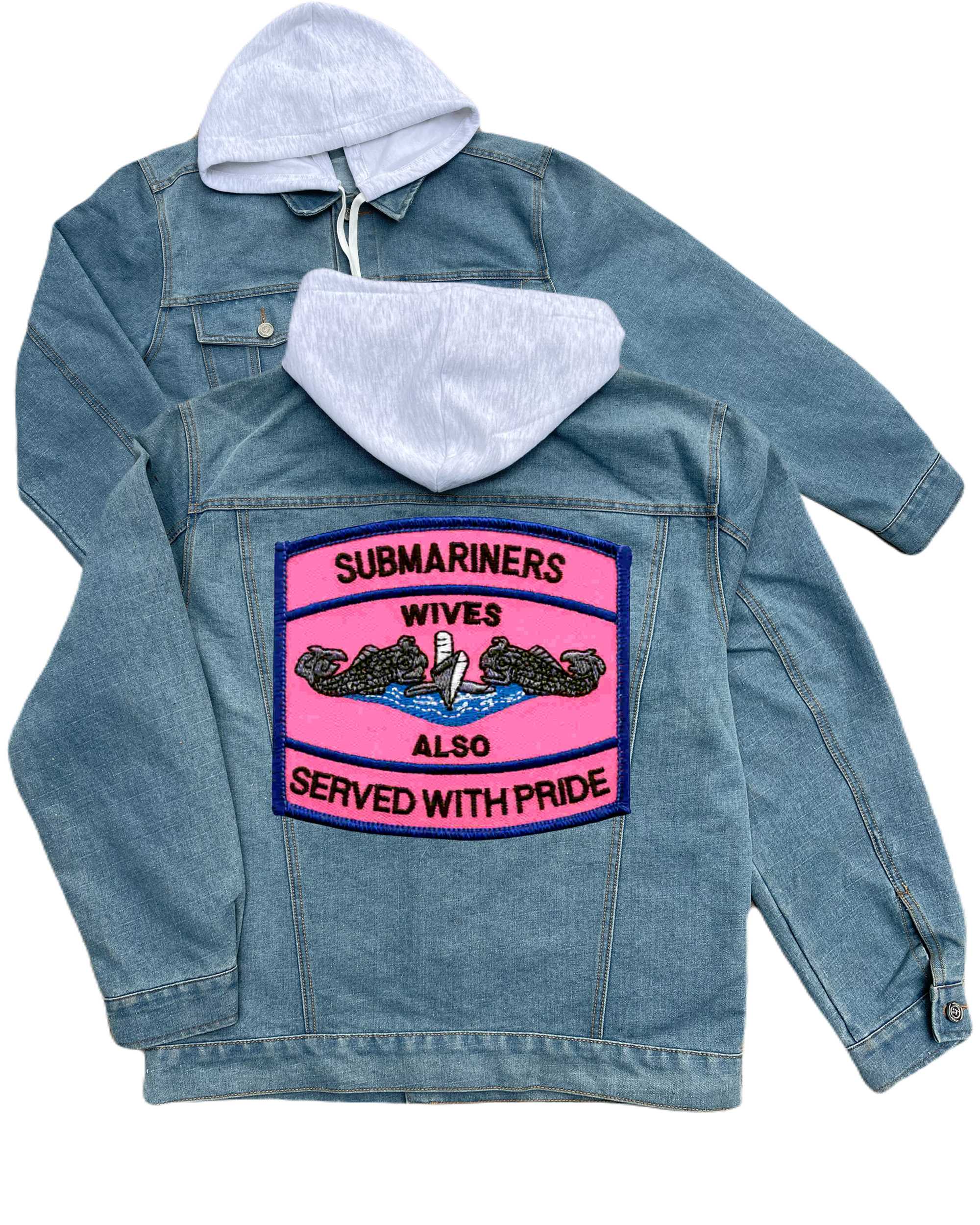 Submarine Wives Also Serve With Pride Pink Embroidered Hood Jean Jacket