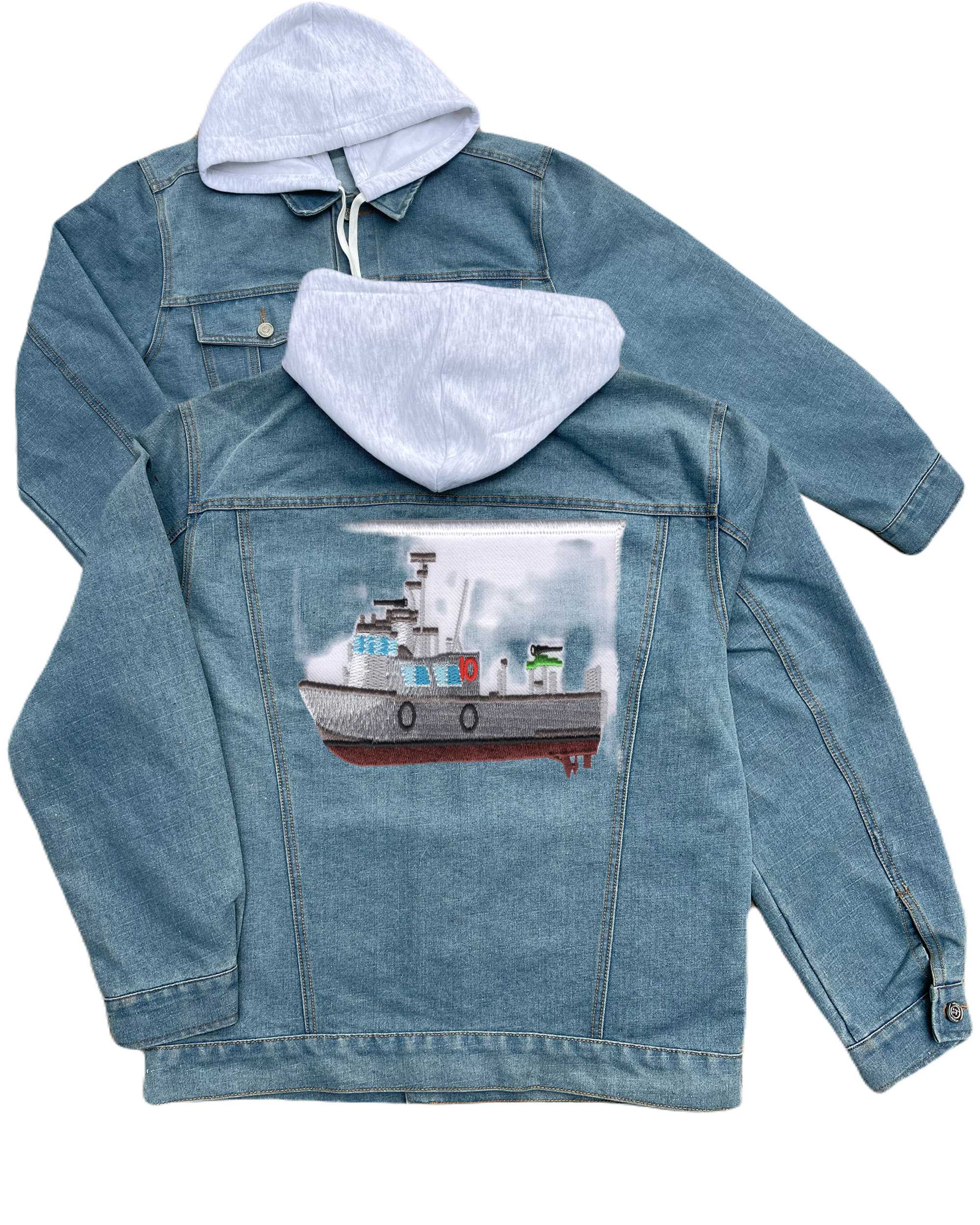 Submarine White Mountain Base Embroidered Hood Jean Jacket