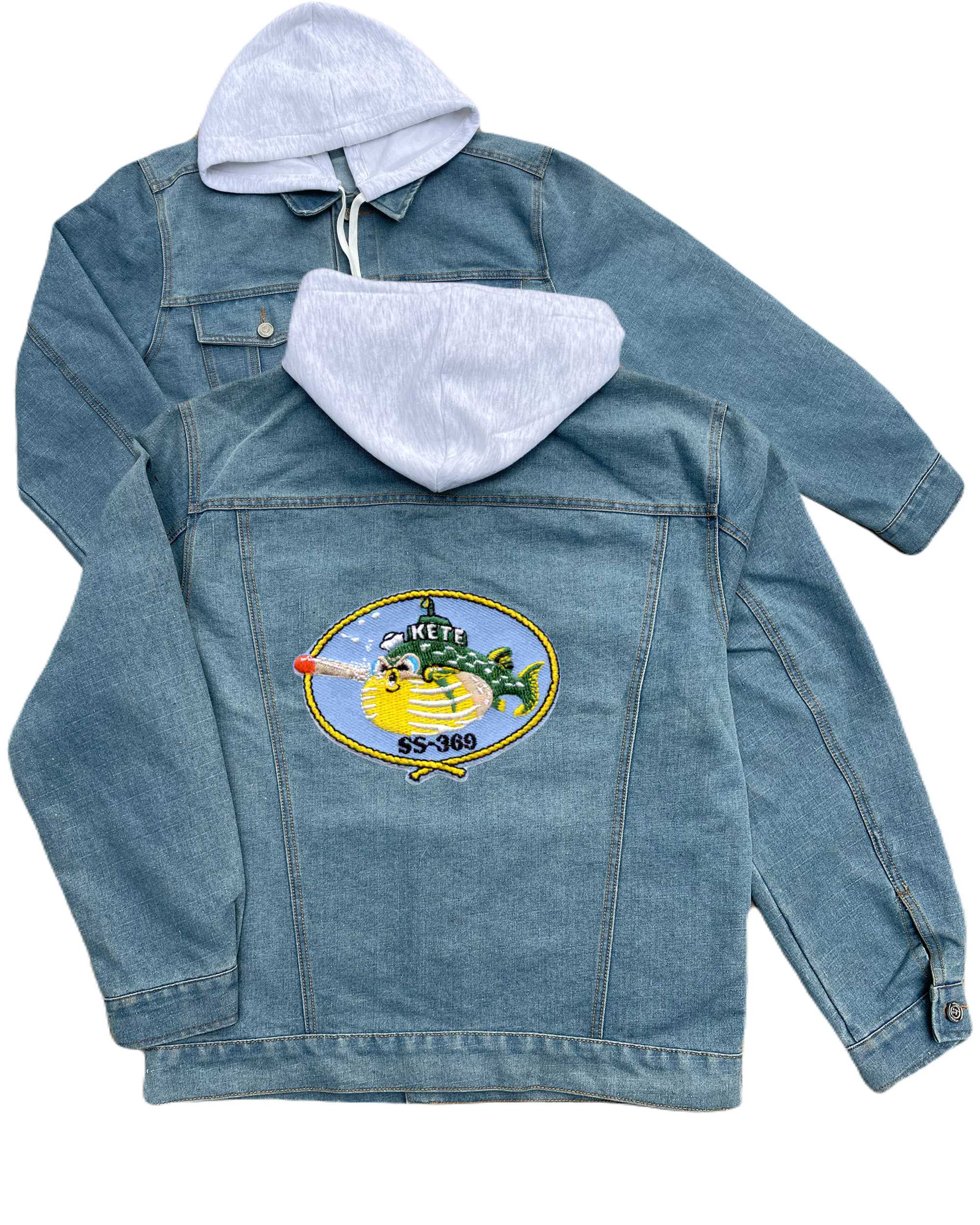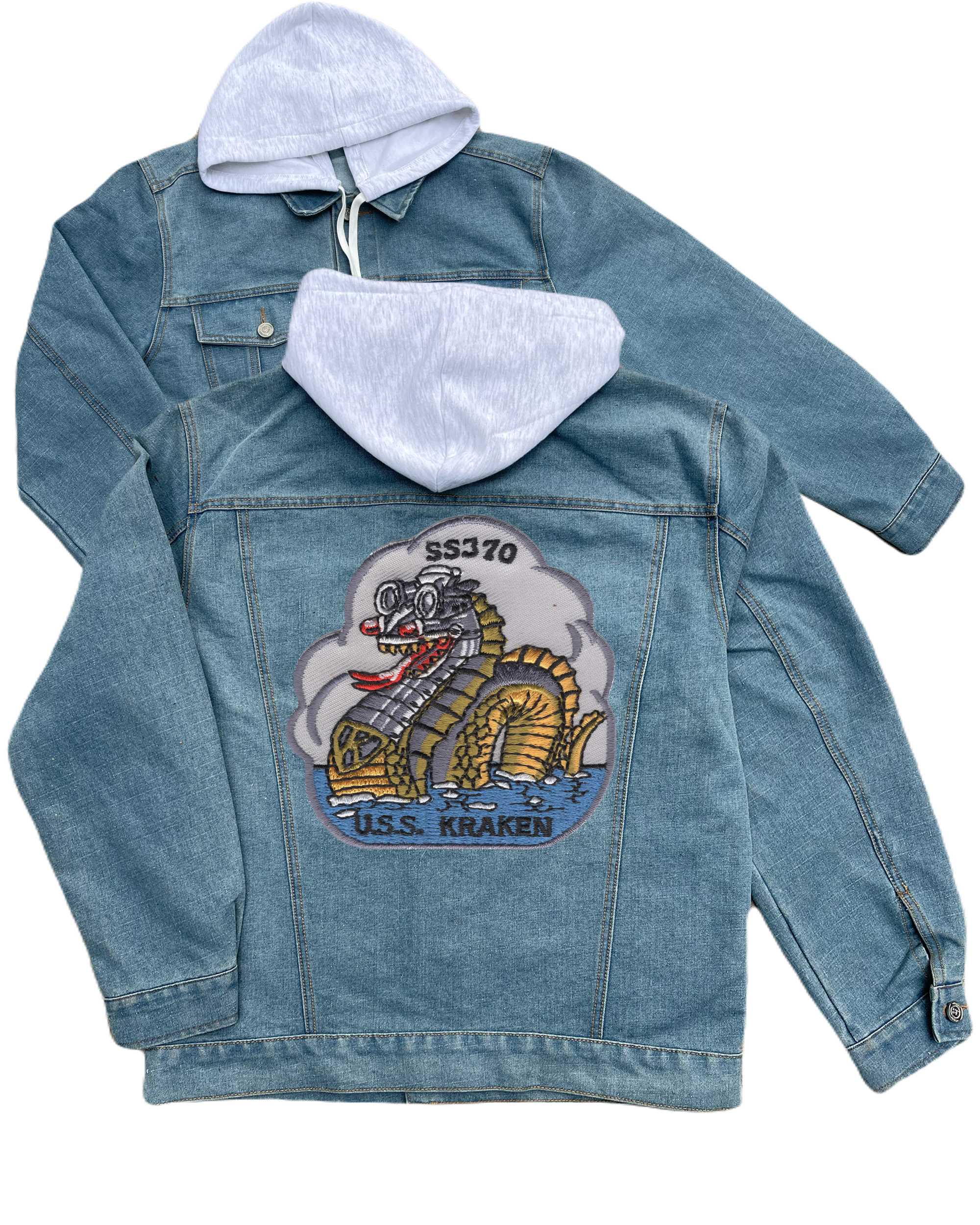 Ss 370 Uss Kraken Embroidered Hood Jean Jacket Small
