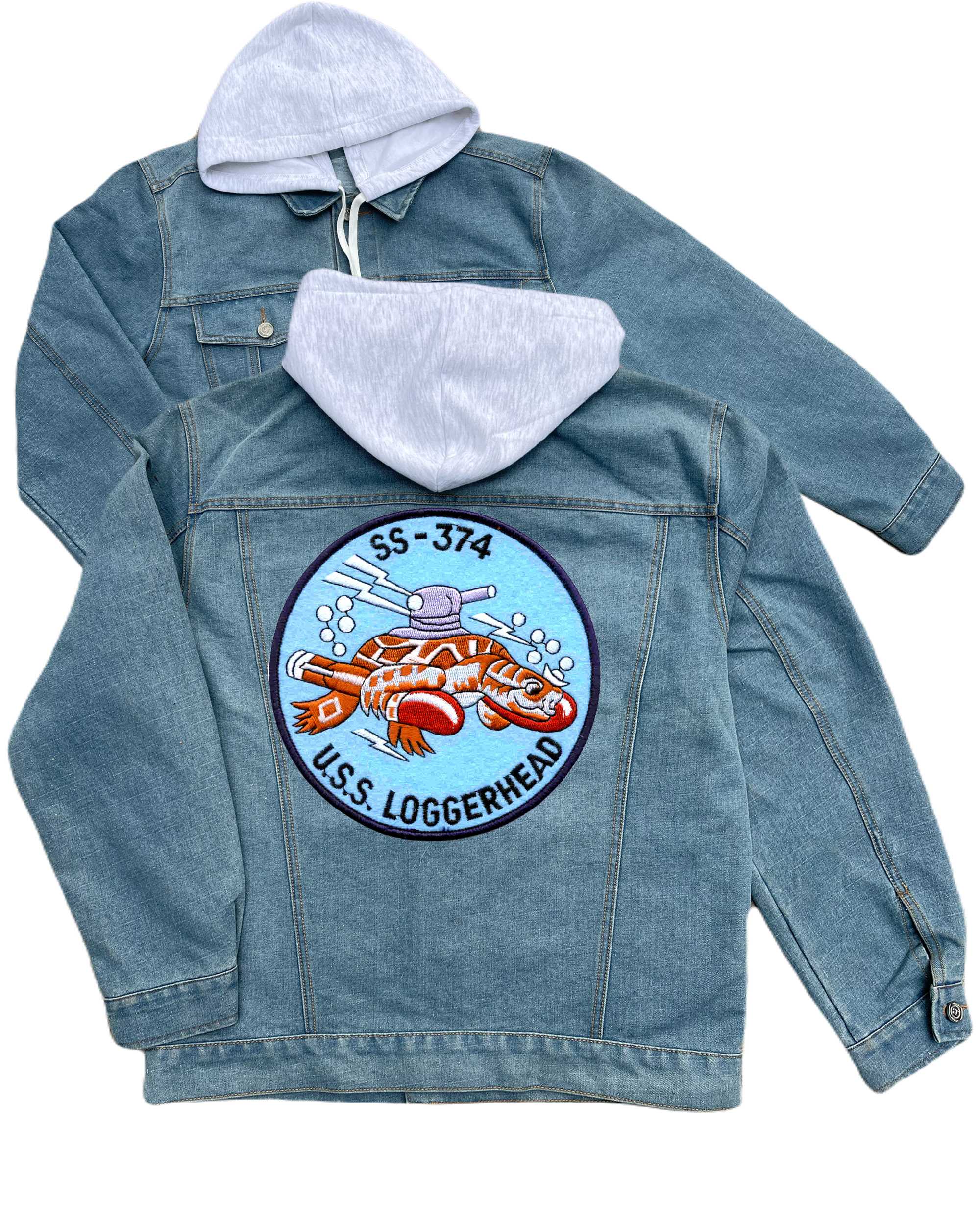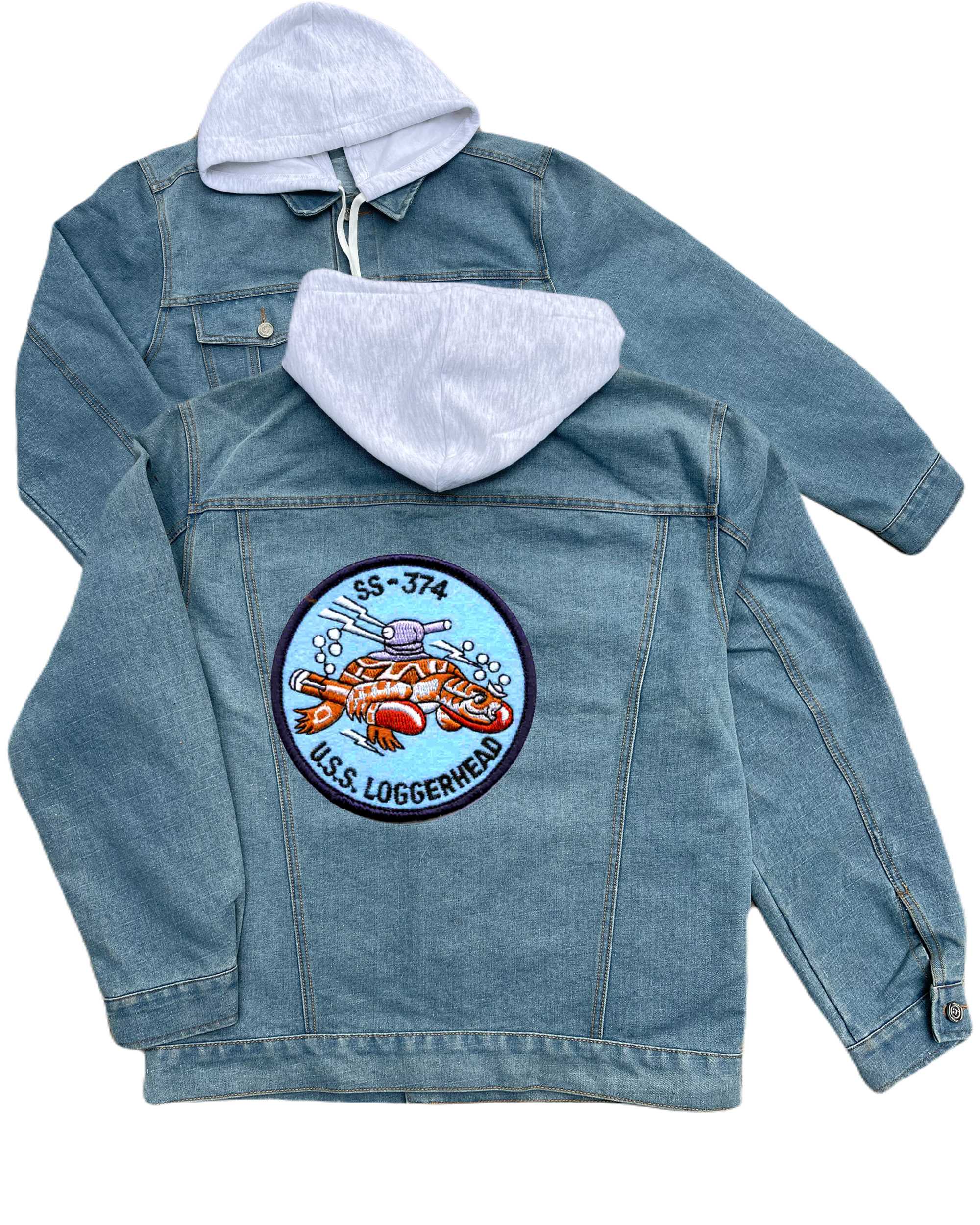 Ss 374 Uss Loggerhead Embroidered Hood Jean Jacket Large