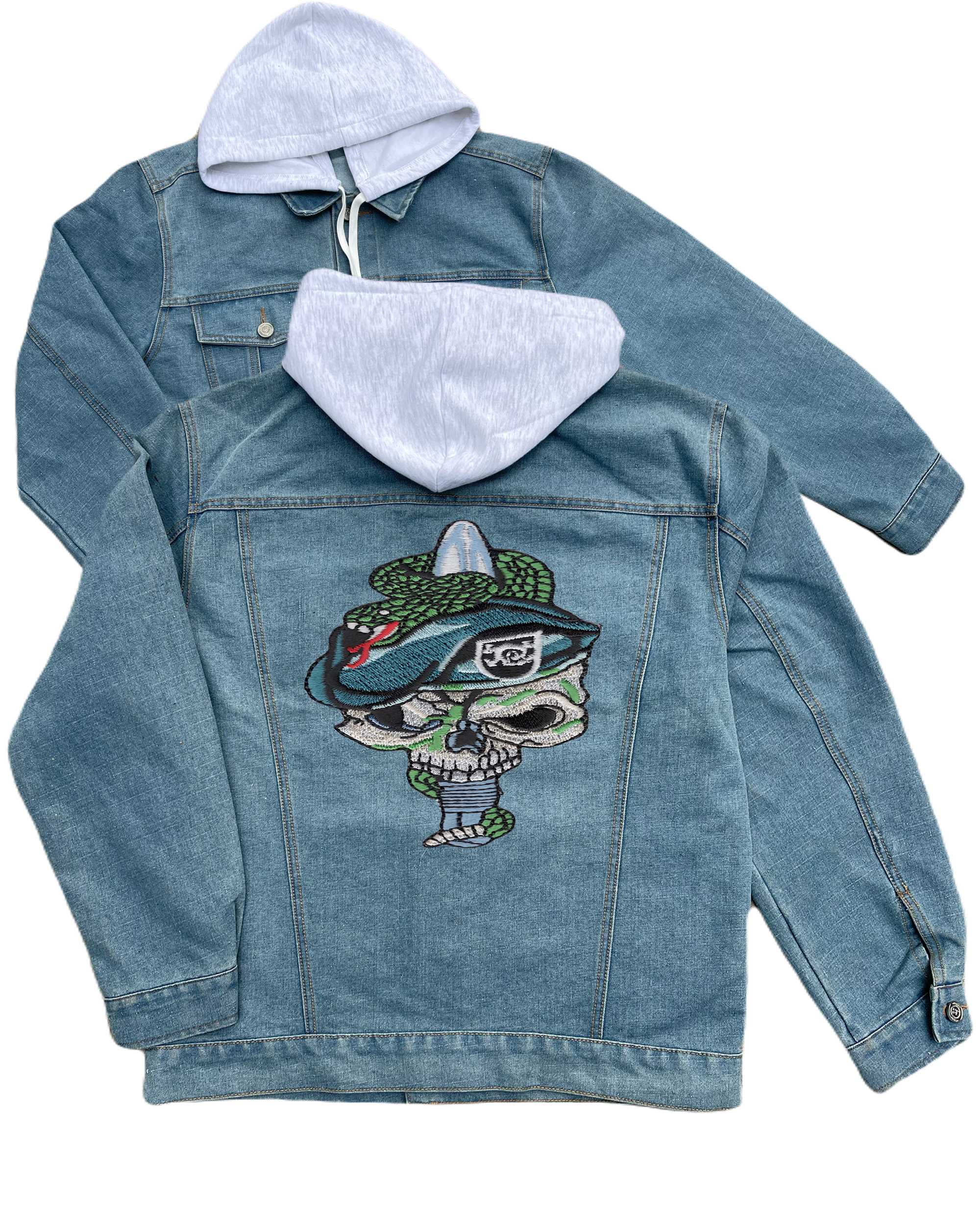 Special Forces Skull With Viper And Black Beret Embroidered Hood Jean Jacket