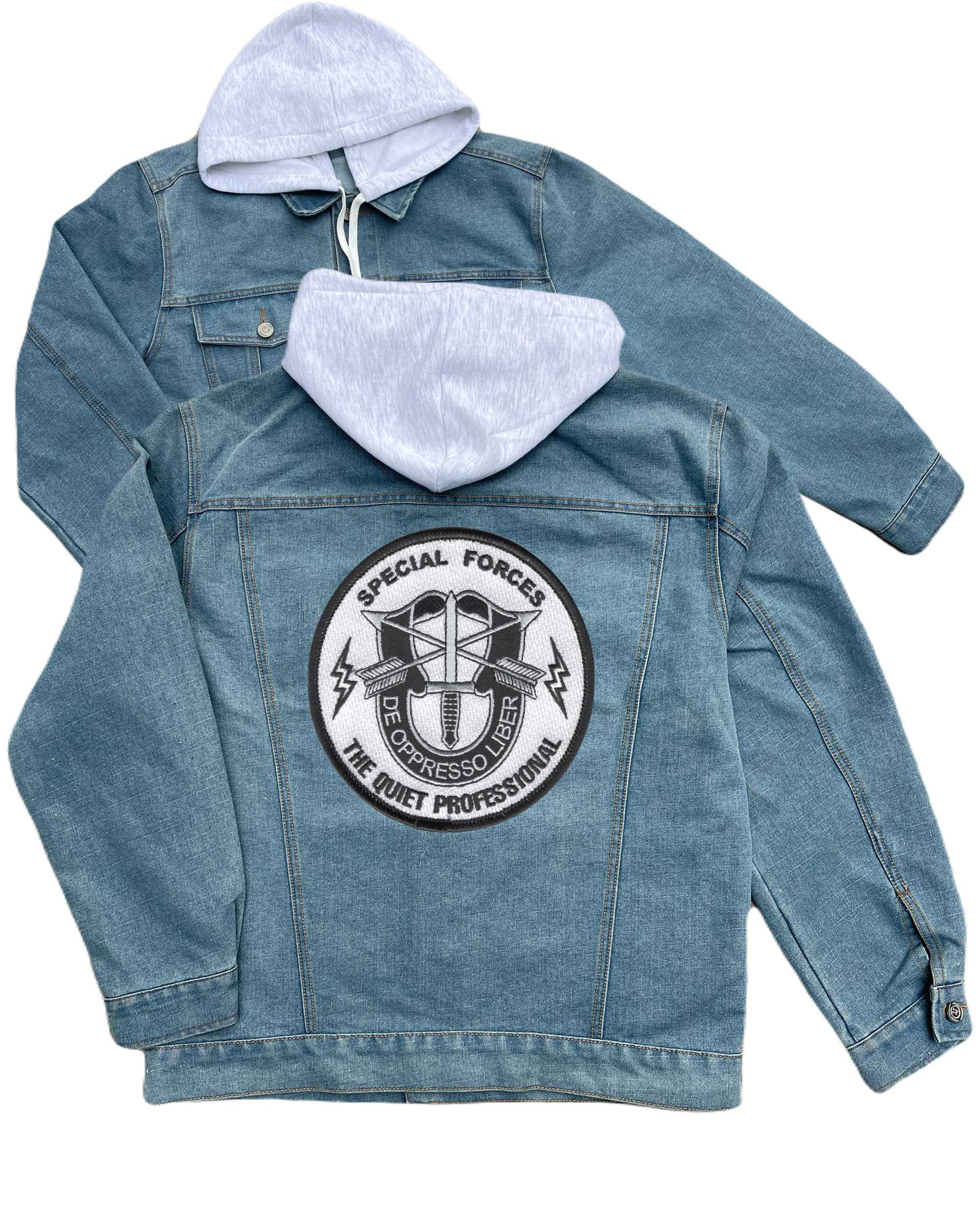Special Forces The Quiet Professional Embroidered Hood Jean Jacket