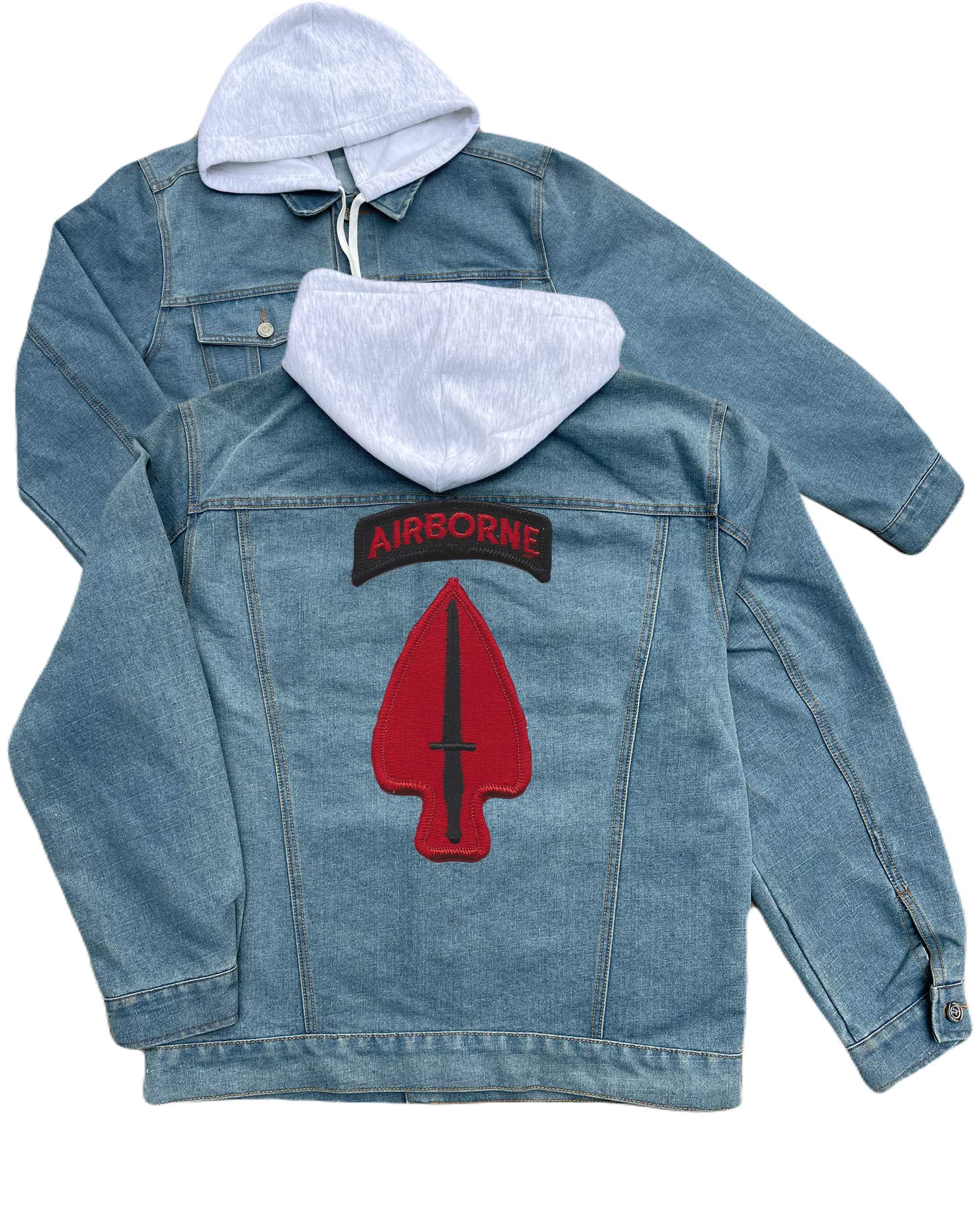 Special Operations Command Embroidered Hood Jean Jacket With Airborne Tab Usasoc