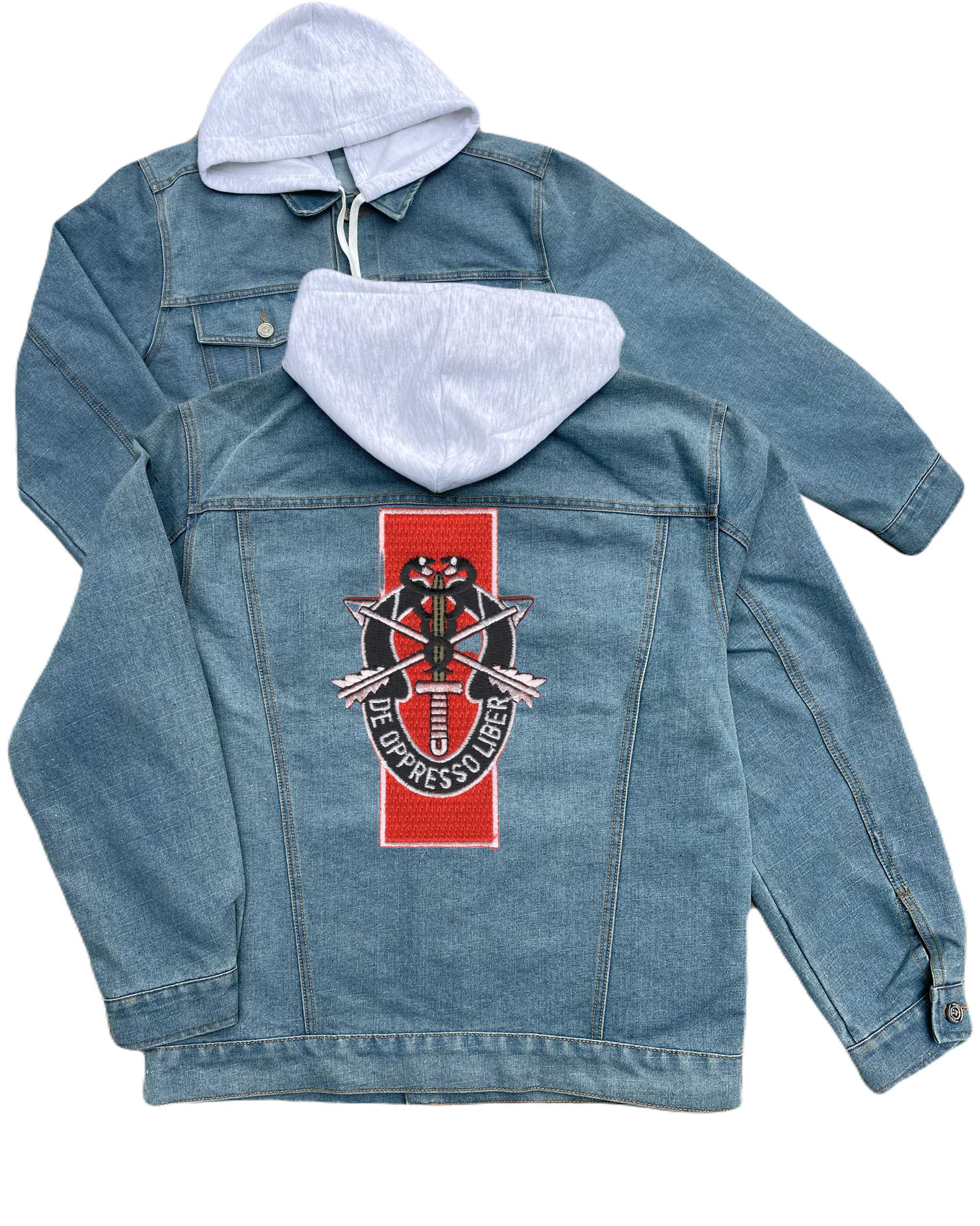 Special Forces Group Crest Embroidered Hood Jean Jacket