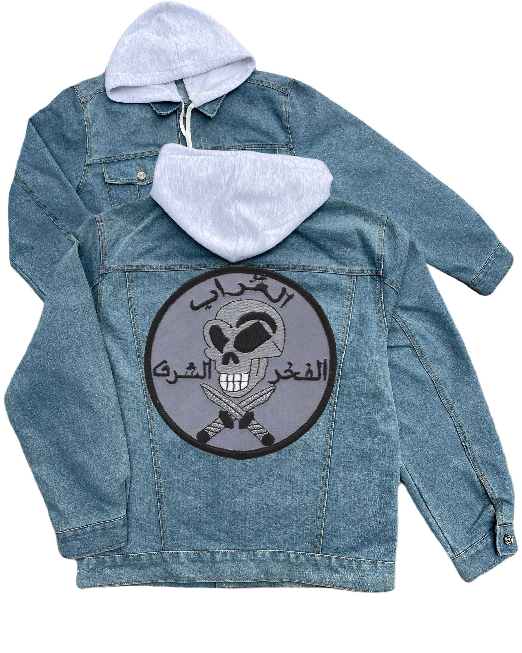 Skull And Crossed Swords Embroidered Hood Jean Jacket