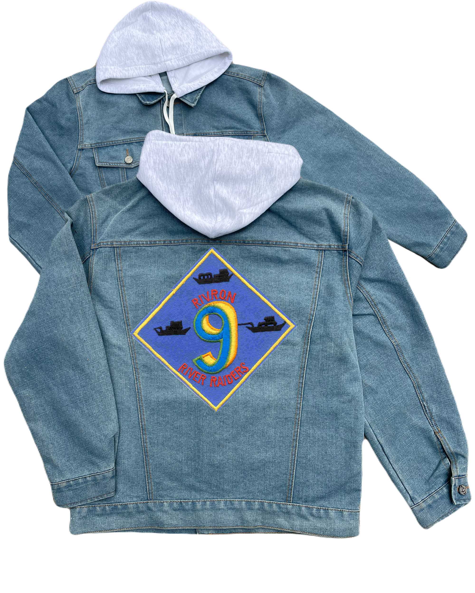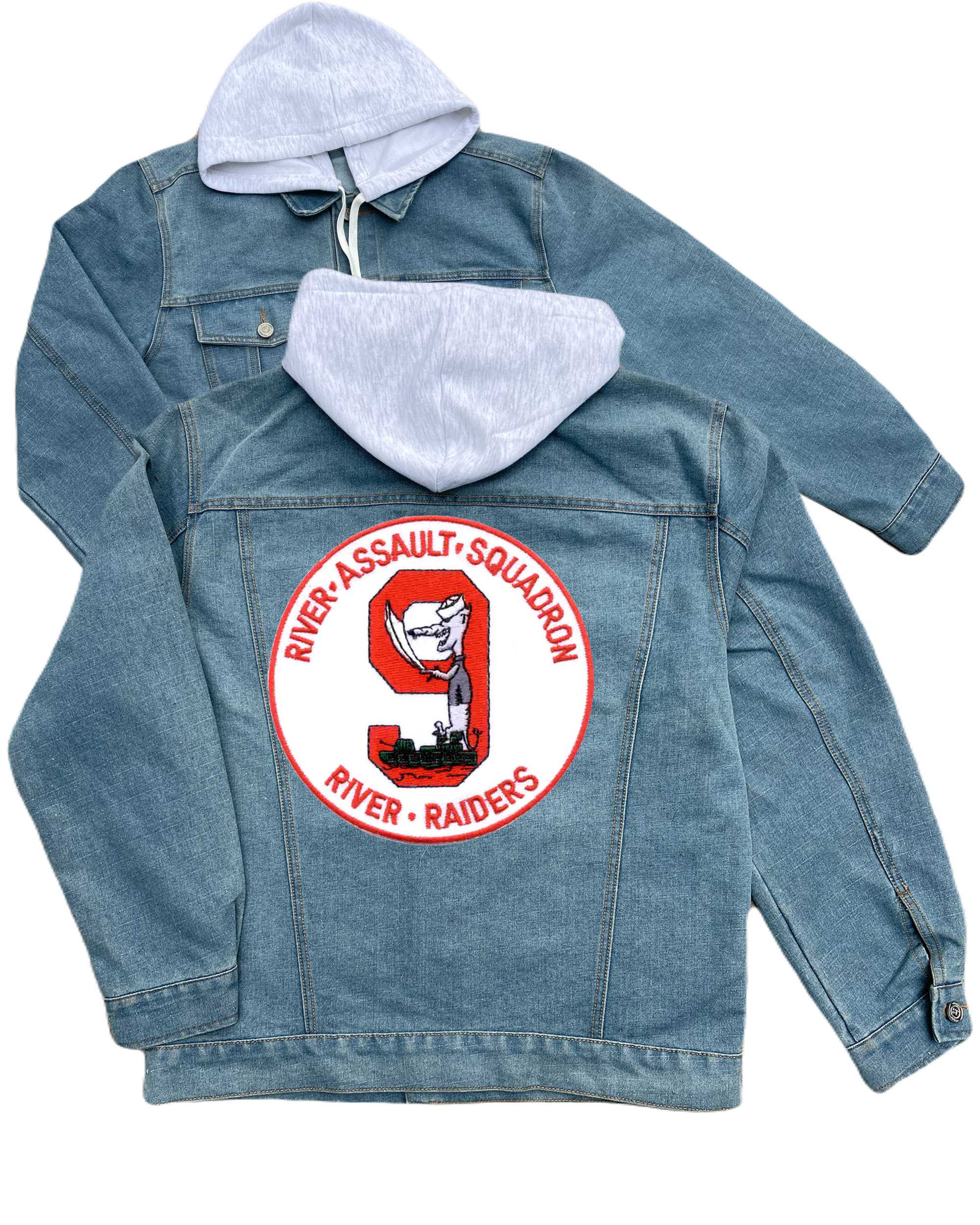 Rivron 9 Naval River Squadron Nine Embroidered Hood Jean Jacket River Raiders