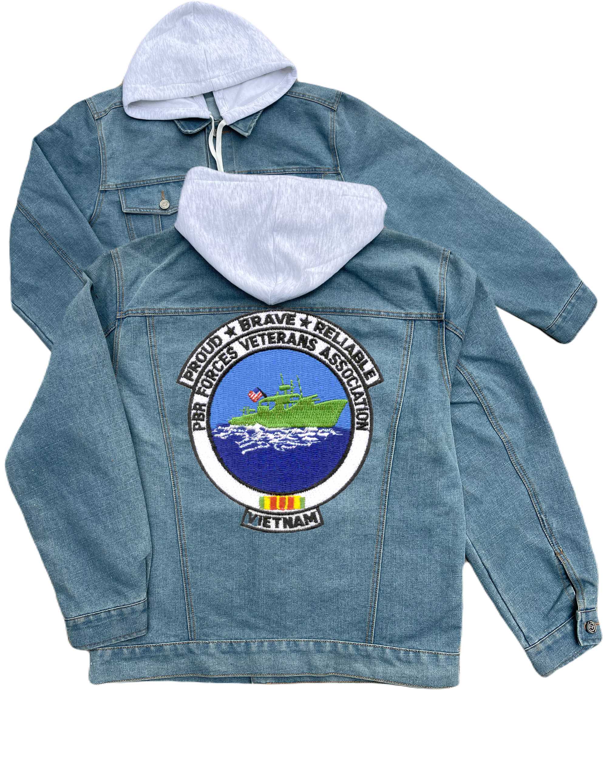 Pbr Forces Veterans Association Patrol Boat River Forces Embroidered Hood Jean Jacket