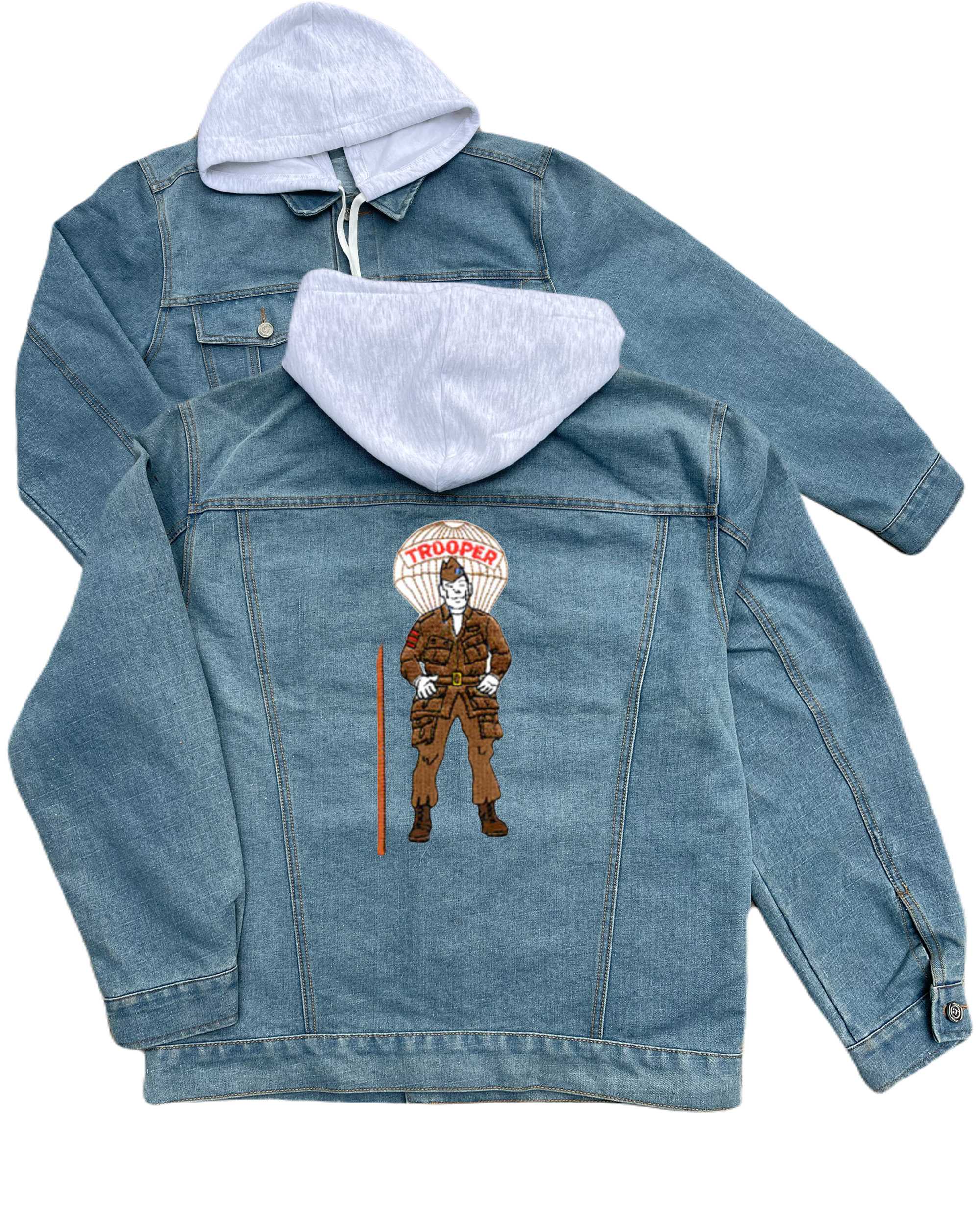 Paratrooper Soldier Embroidered Hood Jean Jacket