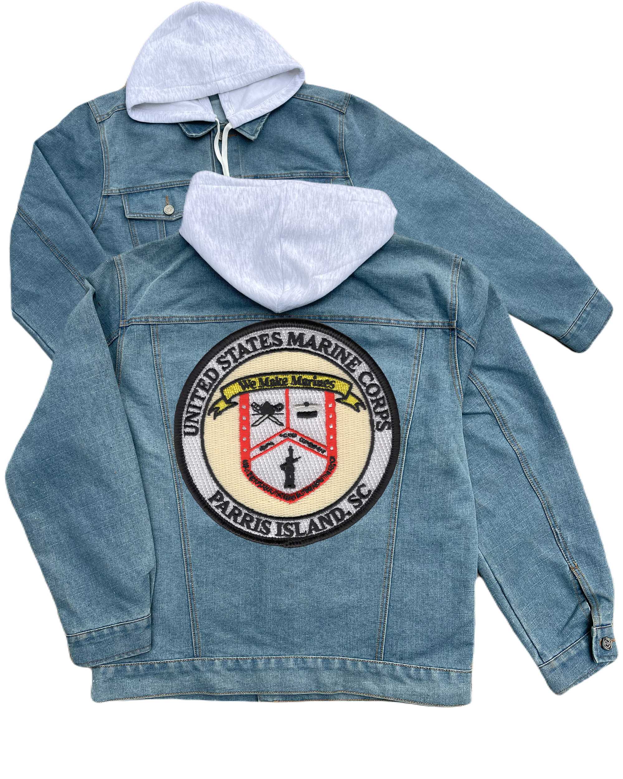 Parris Island Sc Recruit Training Center Embroidered Hood Jean Jacket