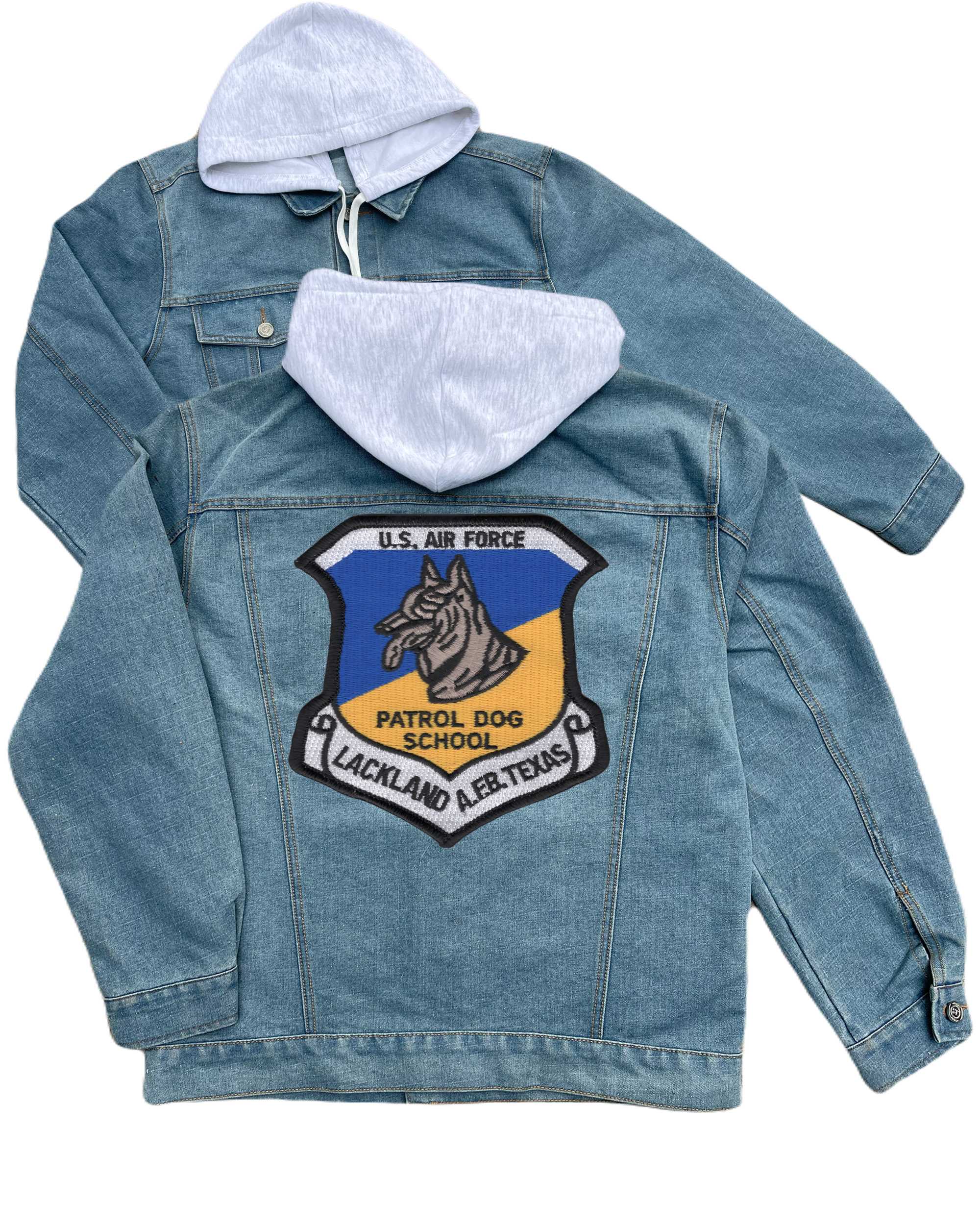 Patrol Dog School Lackland Afb Texas Embroidered Hood Jean Jacket