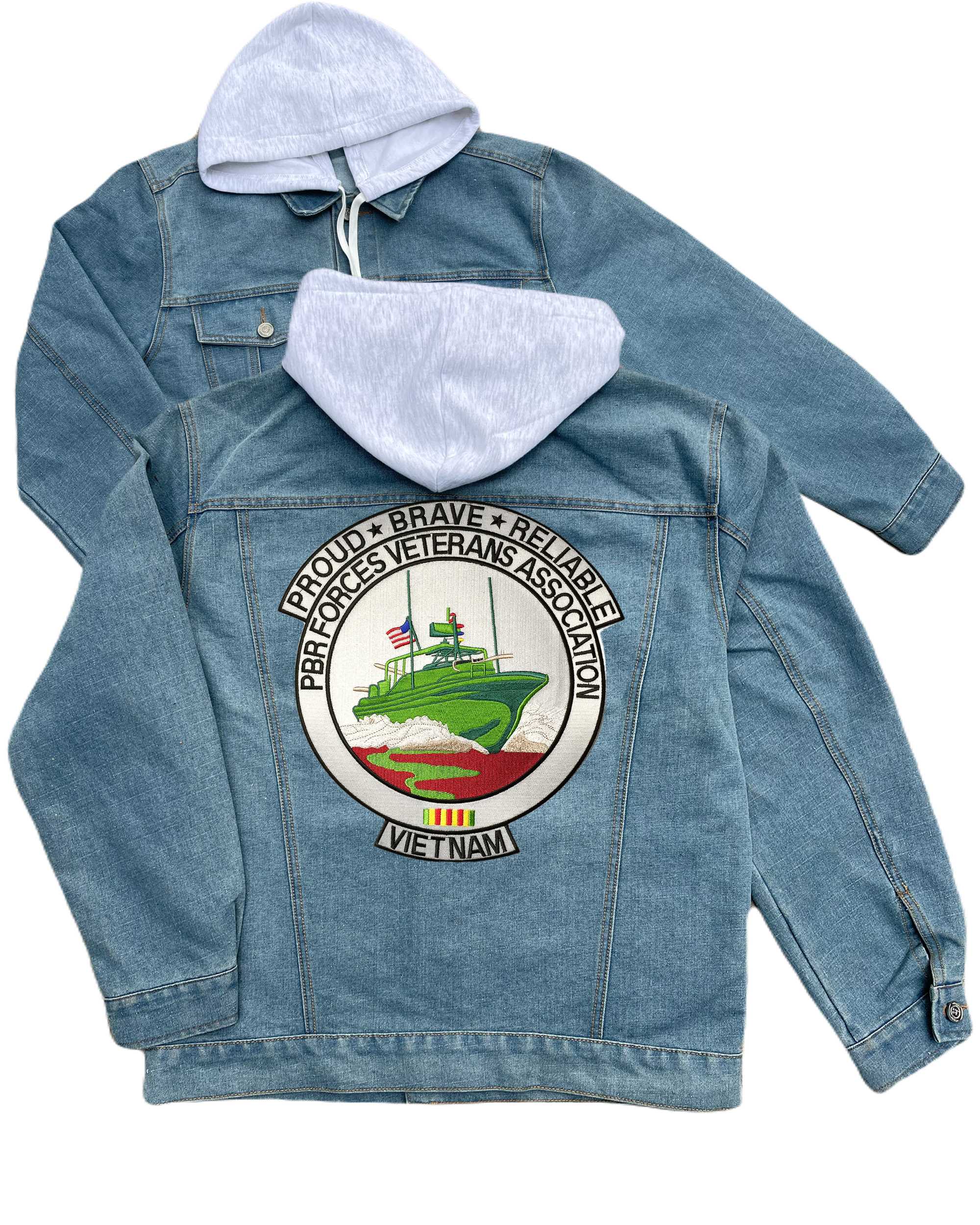 Pbr Forces Veterans Association Large Jacket Back Embroidered Hood Jean Jacket