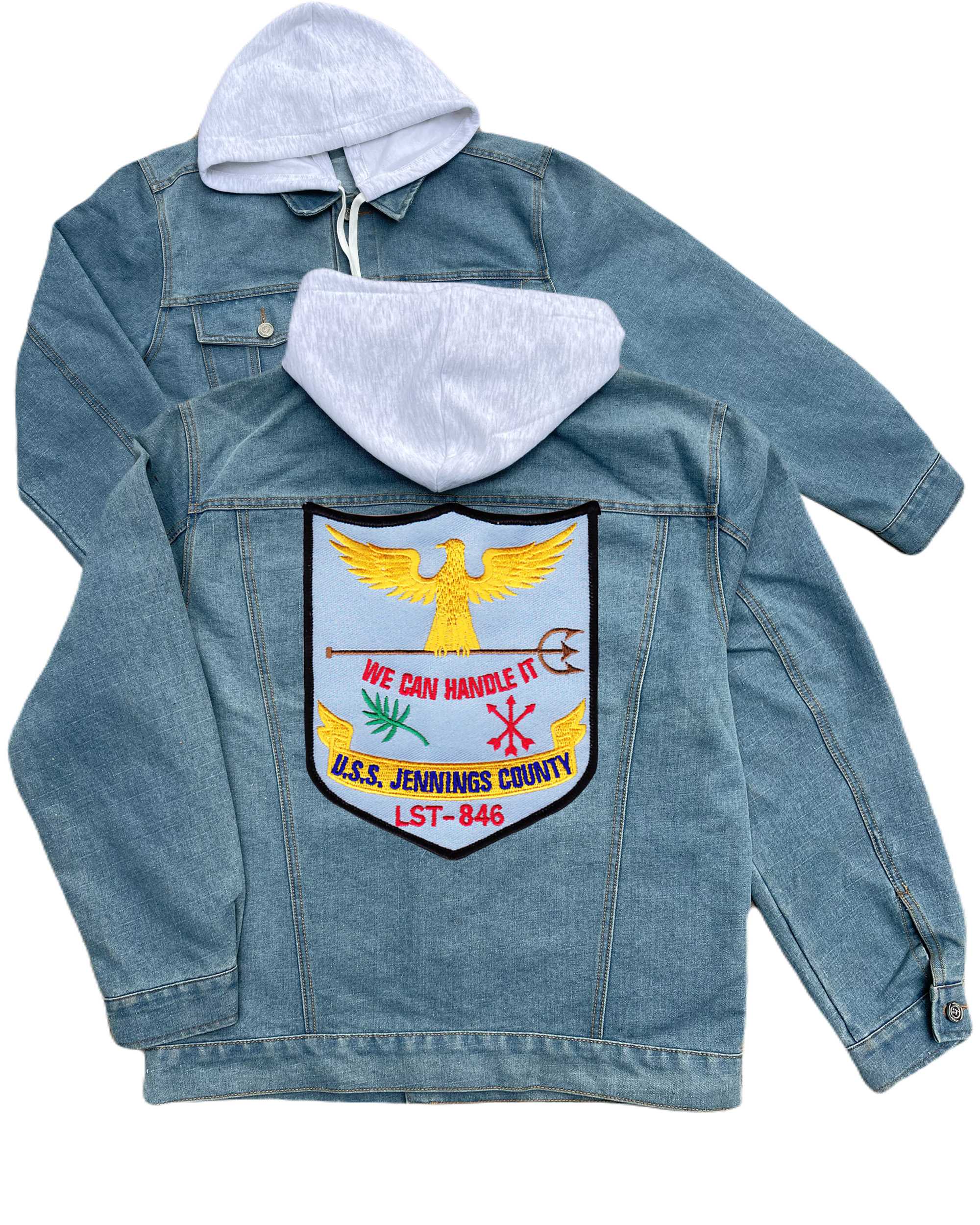 Lst 846 Uss Jennings County Embroidered Hood Jean Jacket