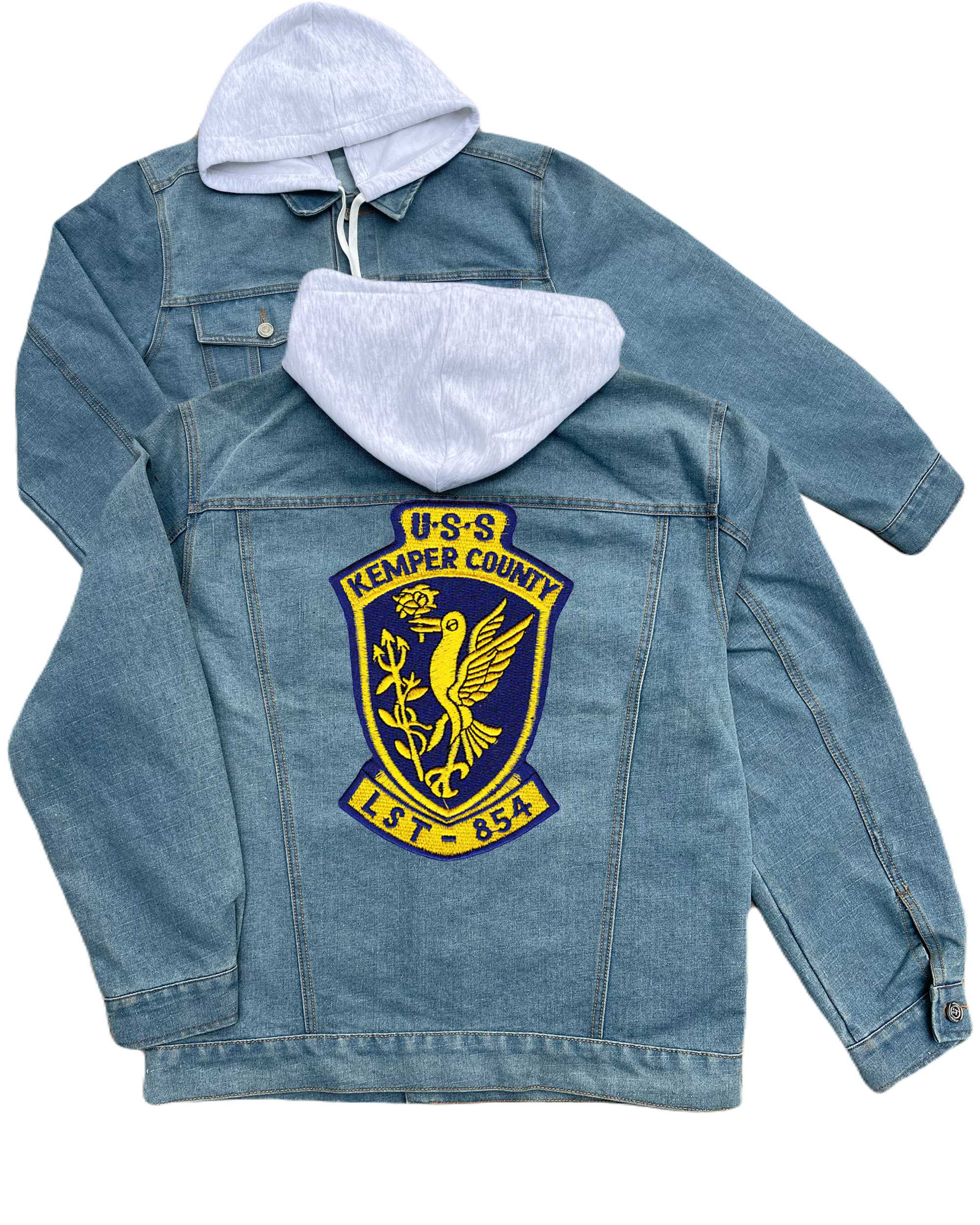 Lst 854 Uss Kemper County Embroidered Hood Jean Jacket