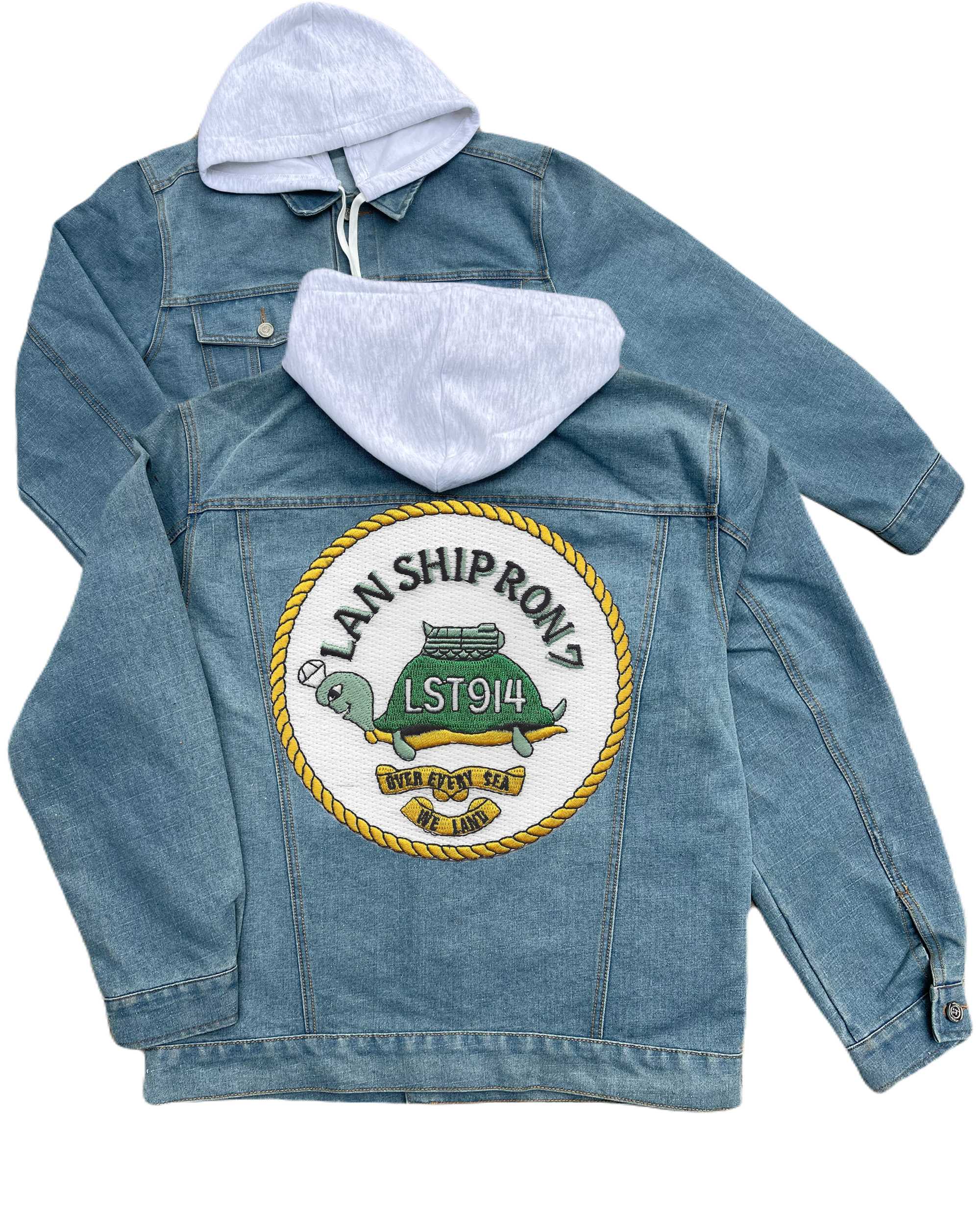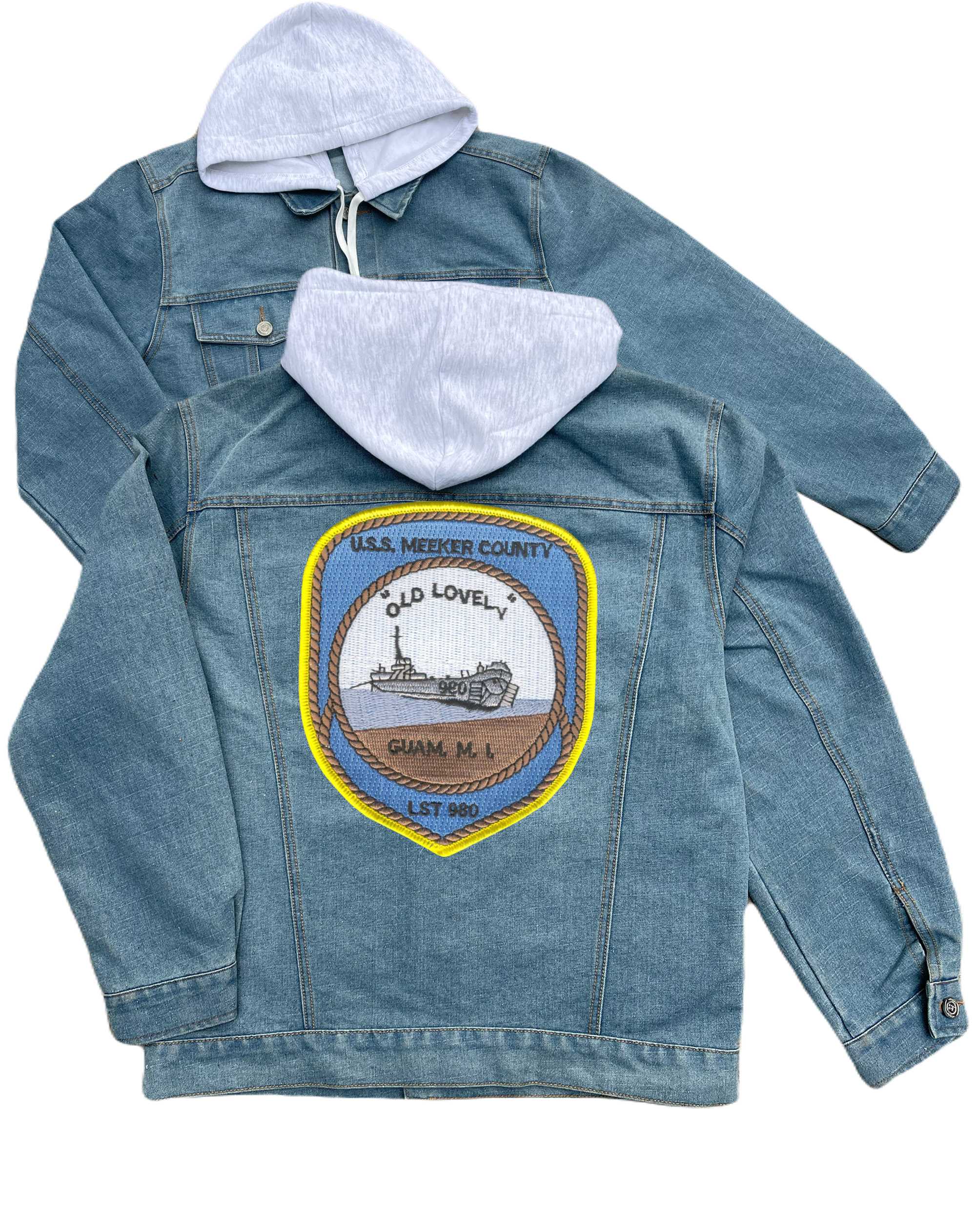 Lst 980 Uss Meeker County Embroidered Hood Jean Jacket