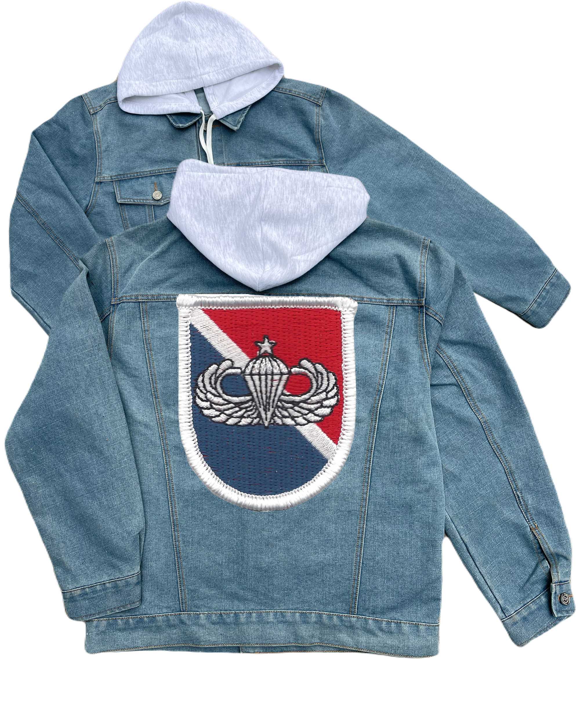 11th Special Forces Group Flash With Senior Jump Wings Embroidered Hood Jean Jacket