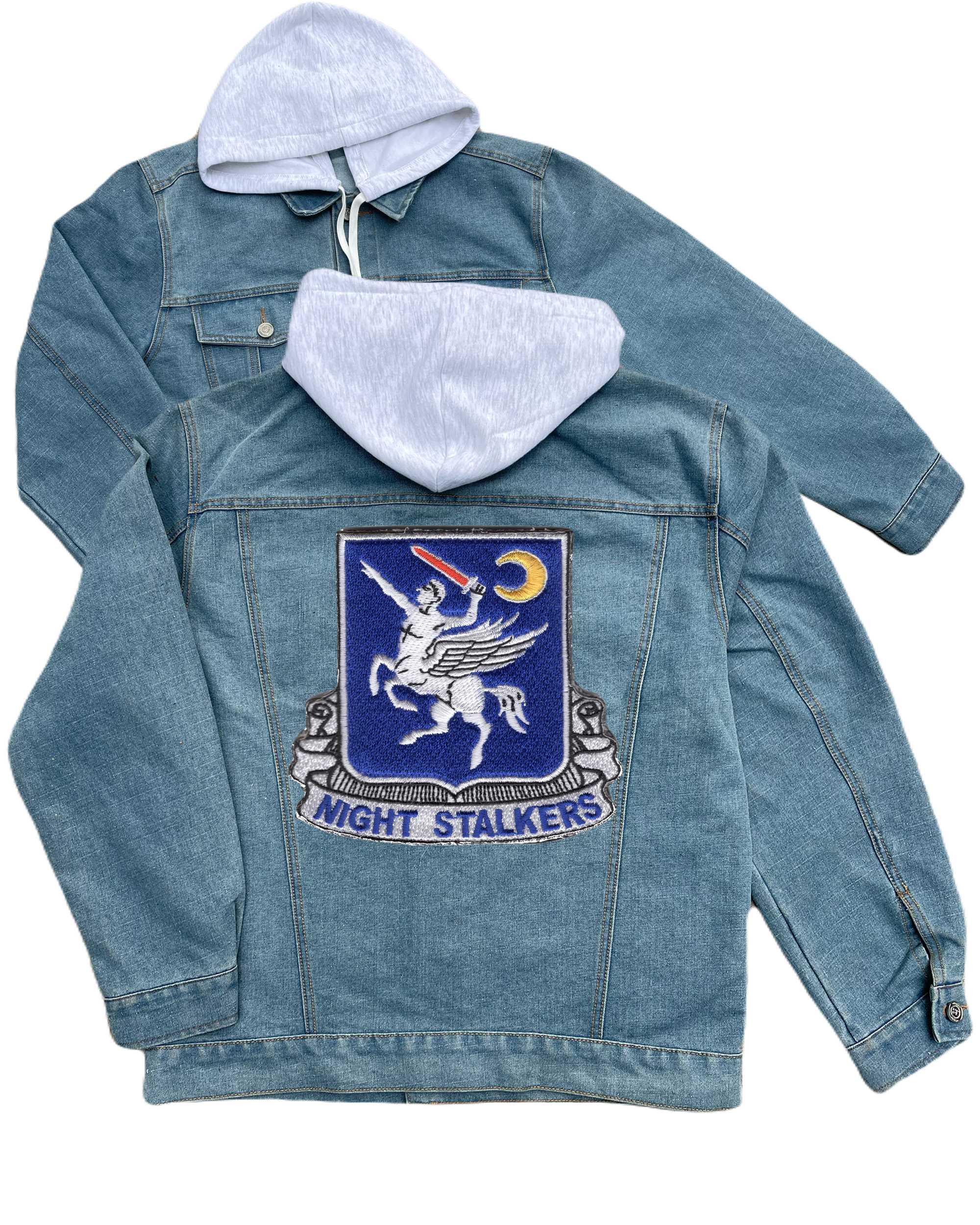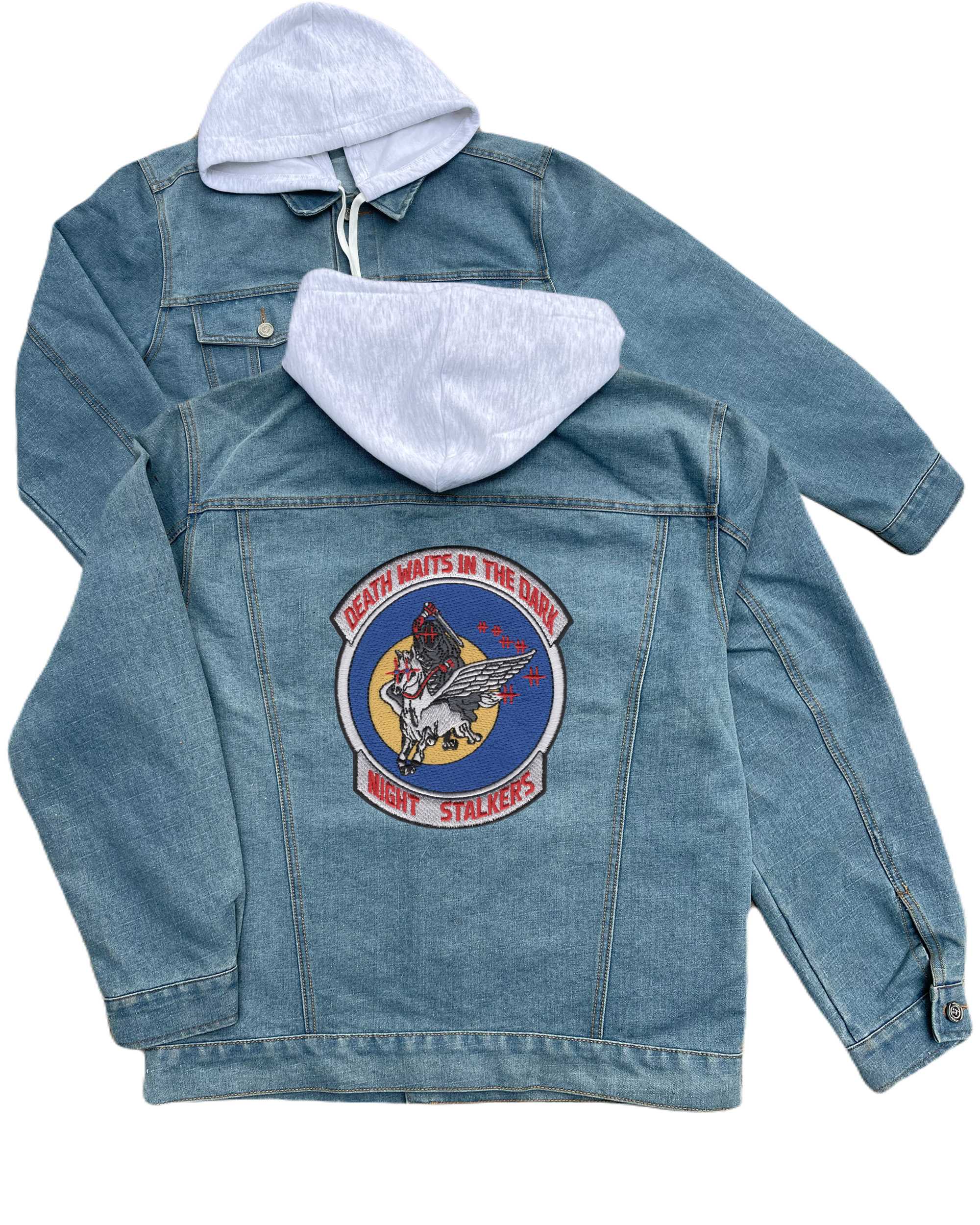 160th Soar 101st Airborne Division Embroidered Hood Jean Jacket Death Waits In The Dark