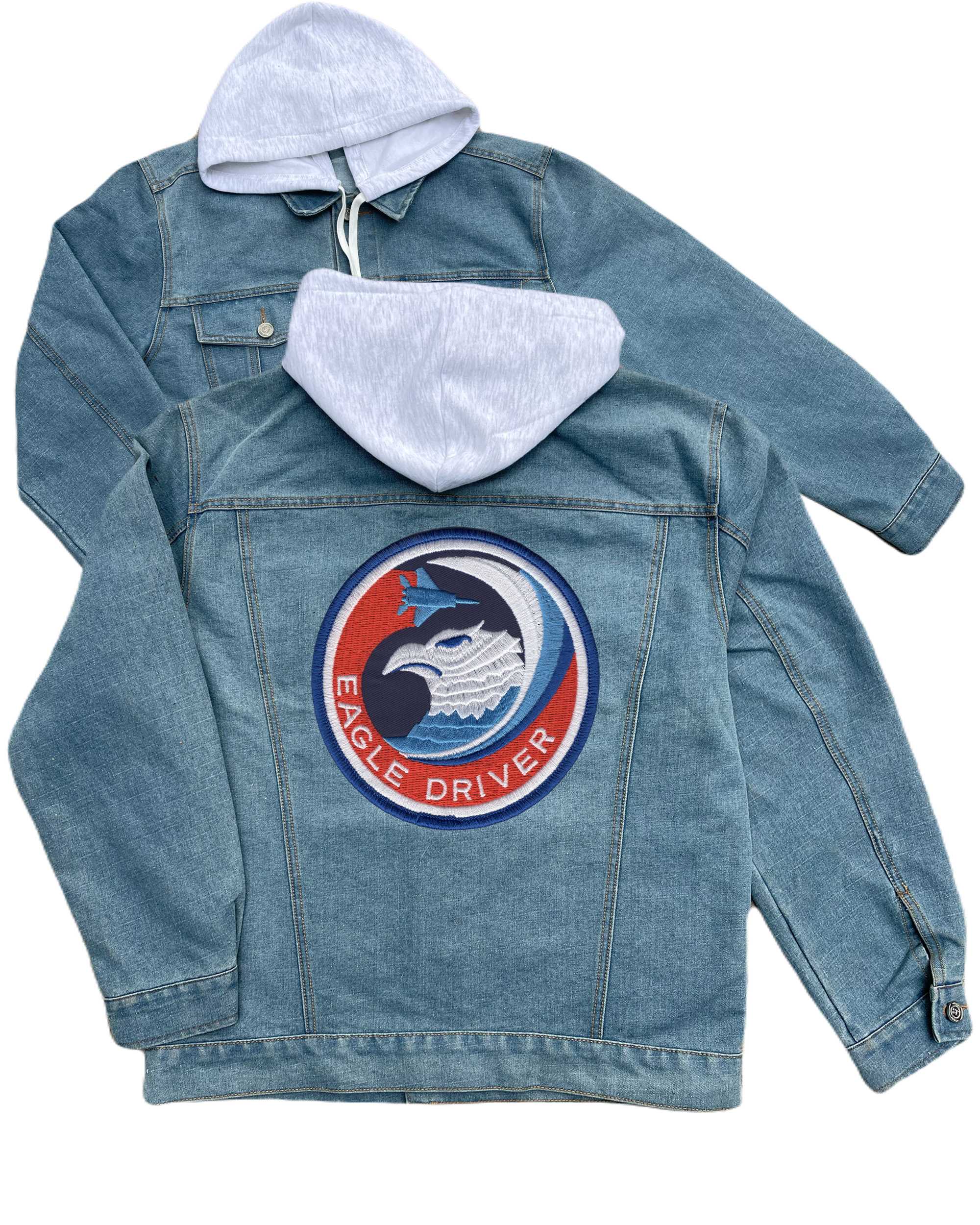 F 15e Strike Eagle All Weather Multipurpose Fighter Embroidered Hood Jean Jacket
