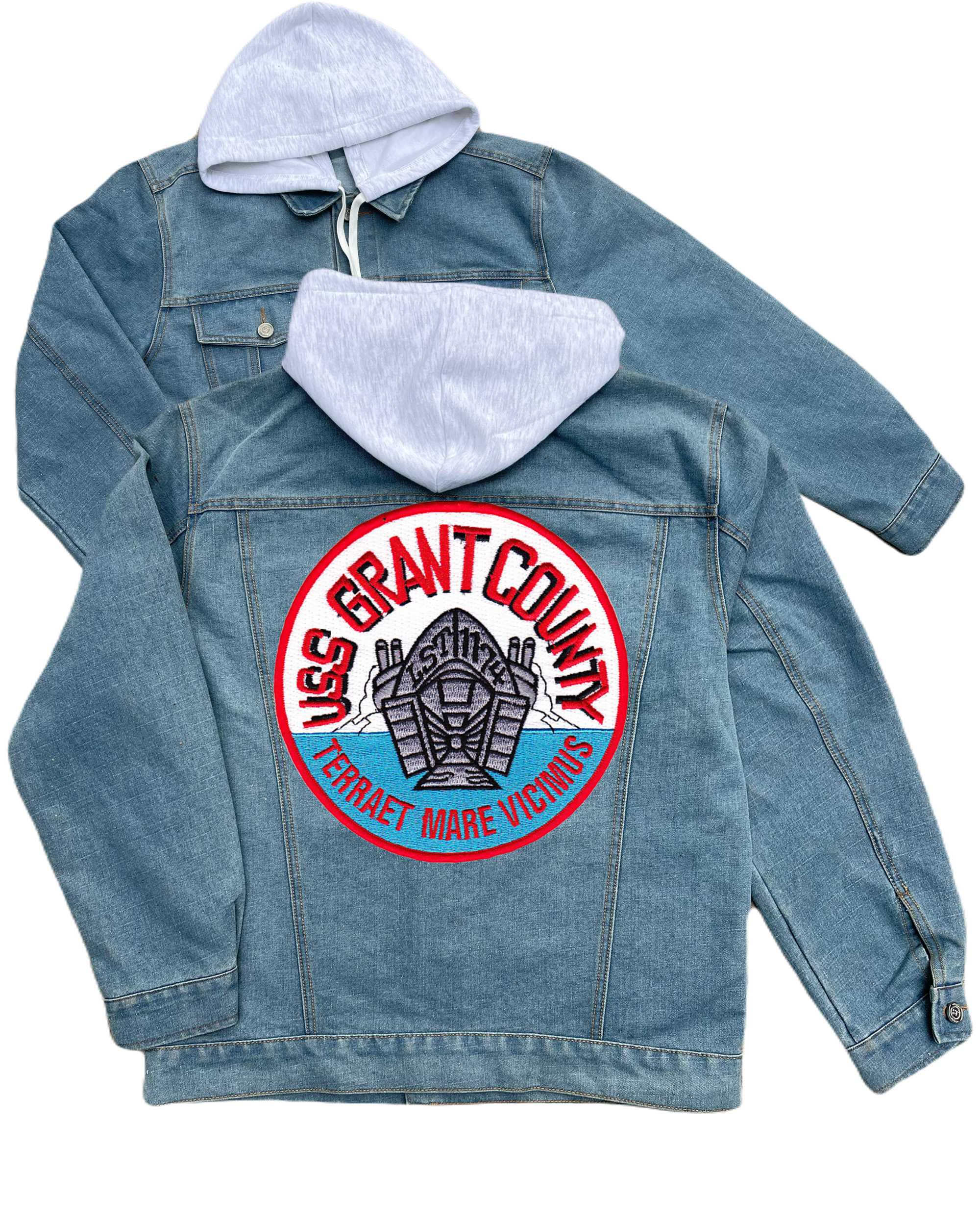 Lst 1174 Uss Grant County Embroidered Hood Jean Jacket