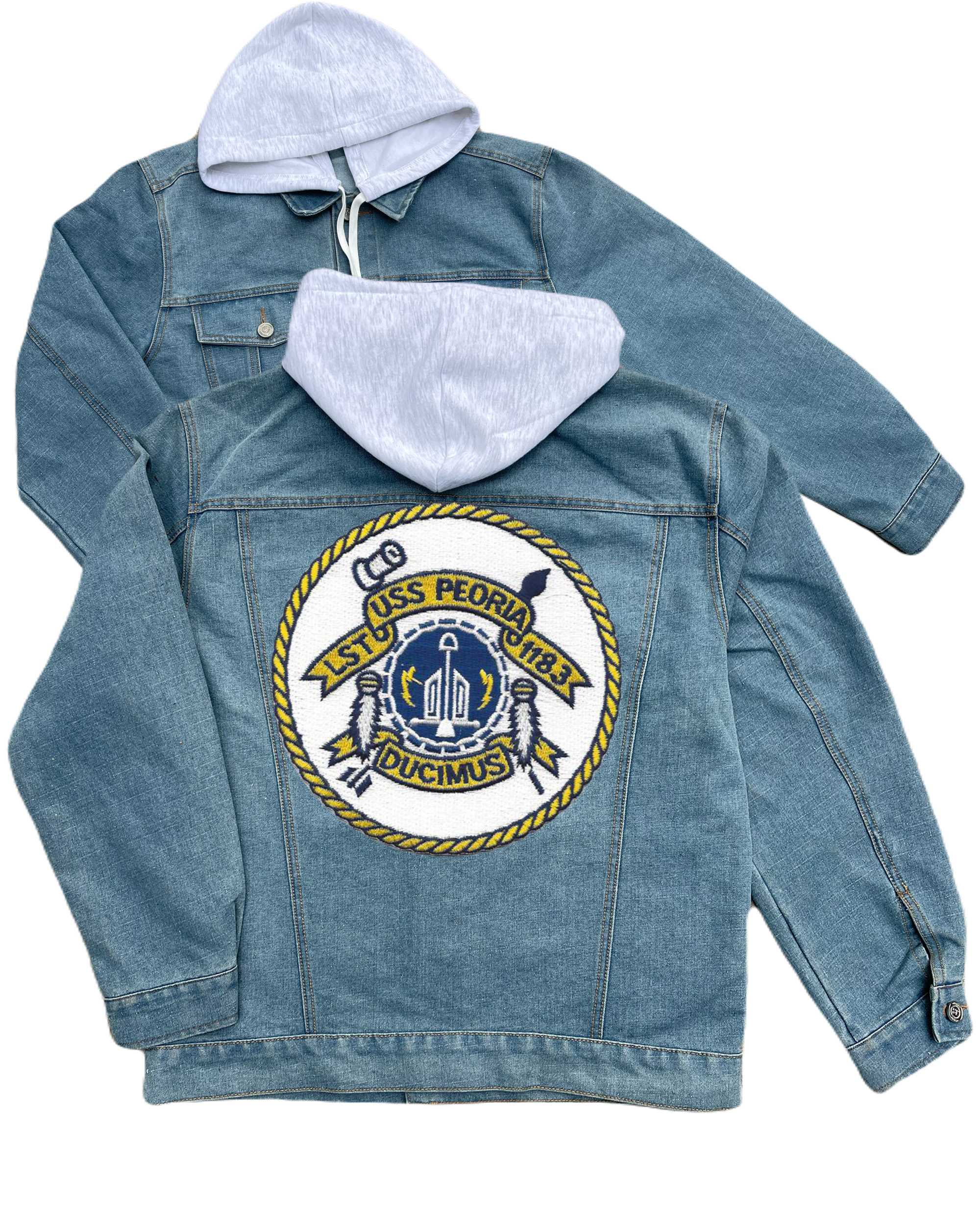 Lst 1183 Uss Peoria Embroidered Hood Jean Jacket