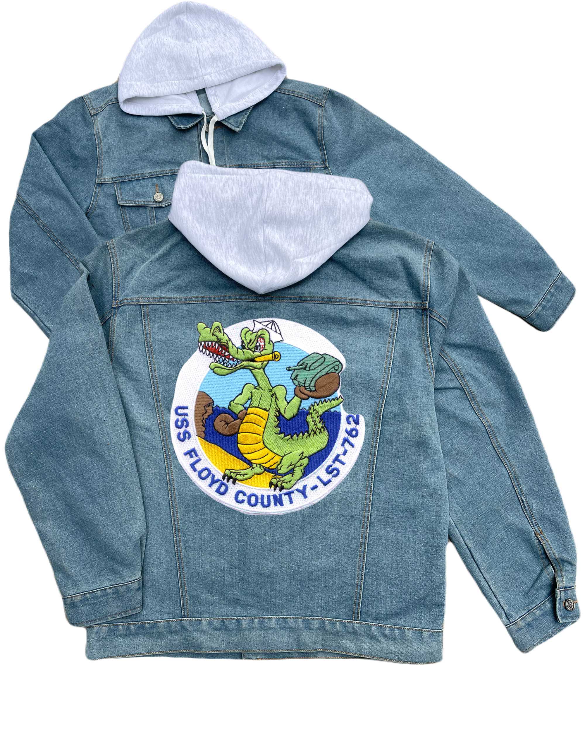 Lst 762 Uss Floyd County Tank Landing Ship Embroidered Hood Jean Jacket Insignia