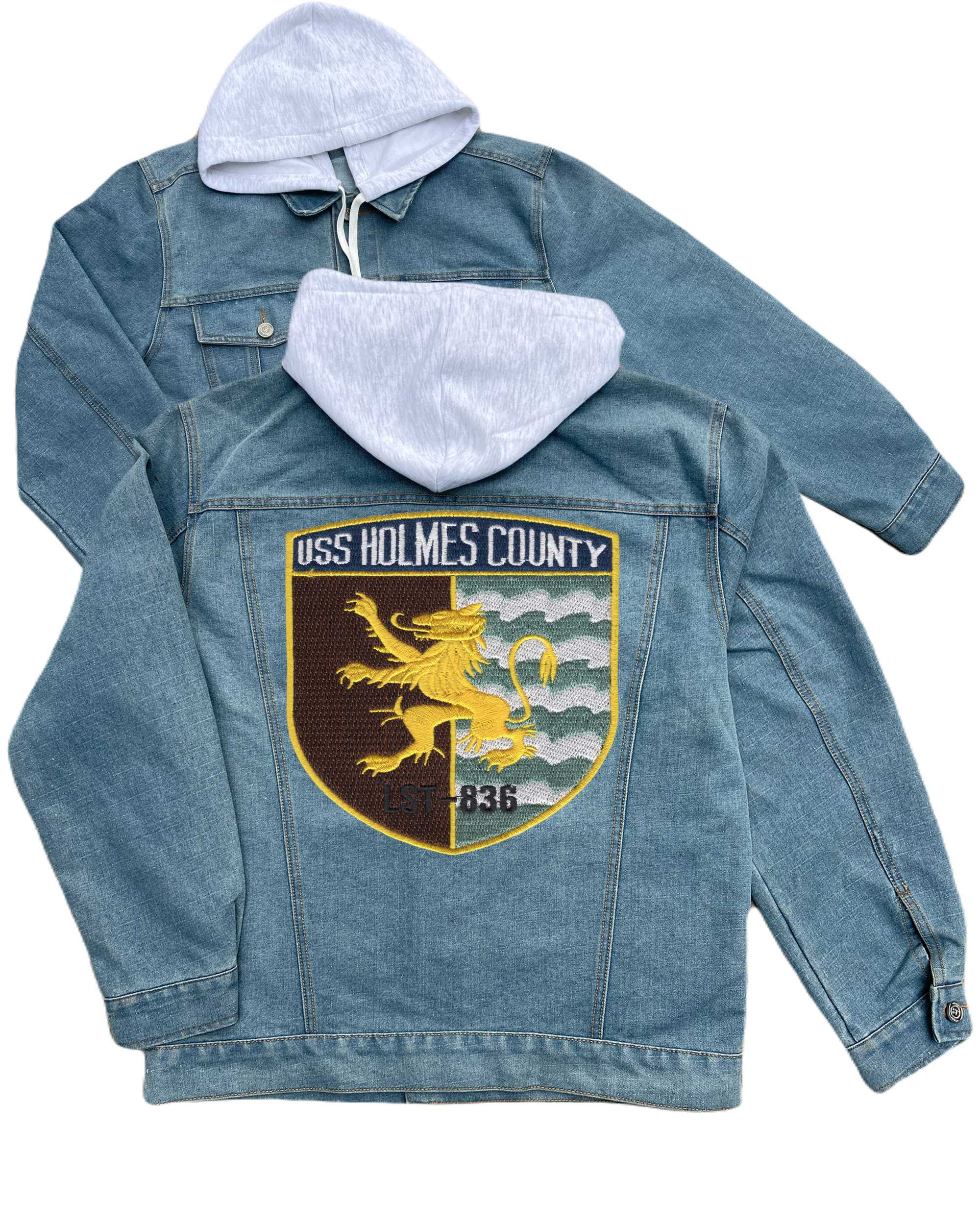 Lst 836 Uss Holmes County Embroidered Hood Jean Jacket