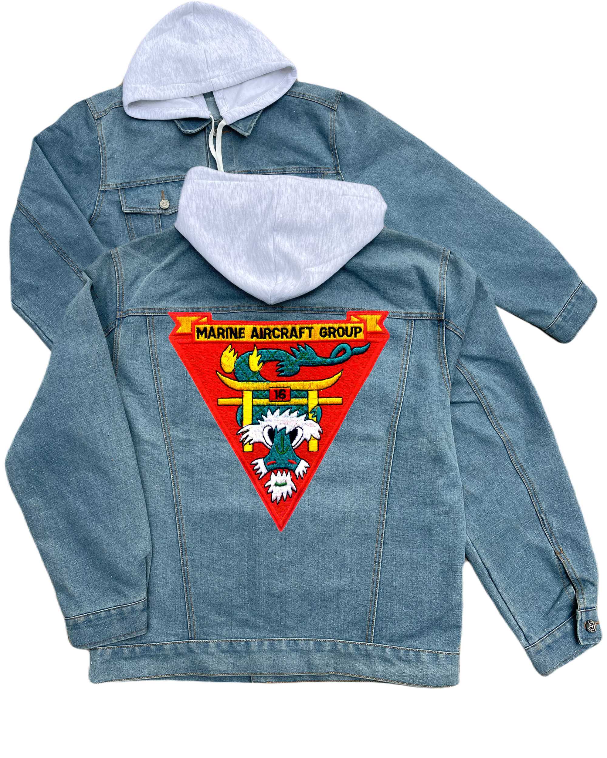 Mag 16 Marine Aircraft Group Sixteen Embroidered Hood Jean Jacket