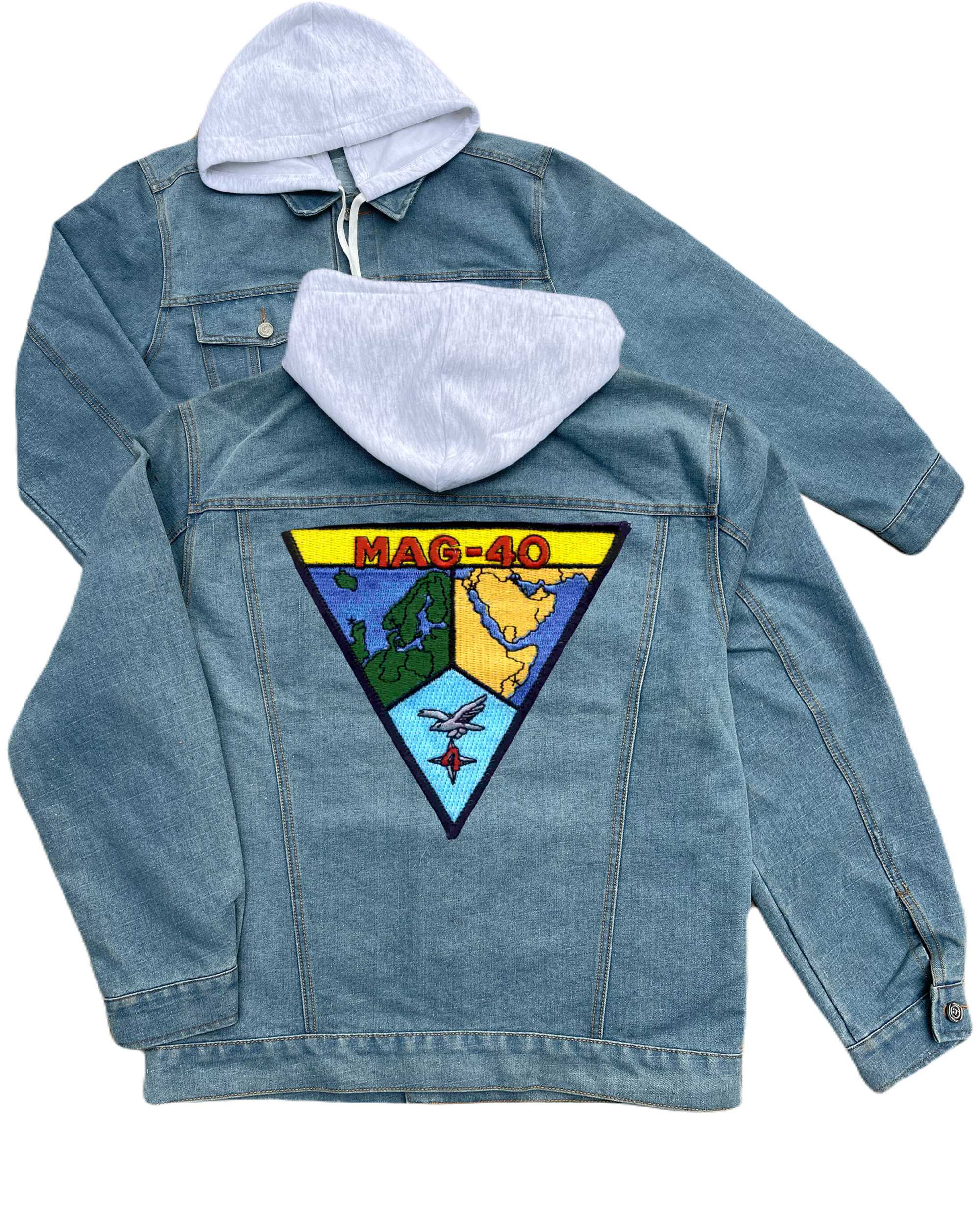 Mag 40 Aircraft Group Embroidered Hood Jean Jacket