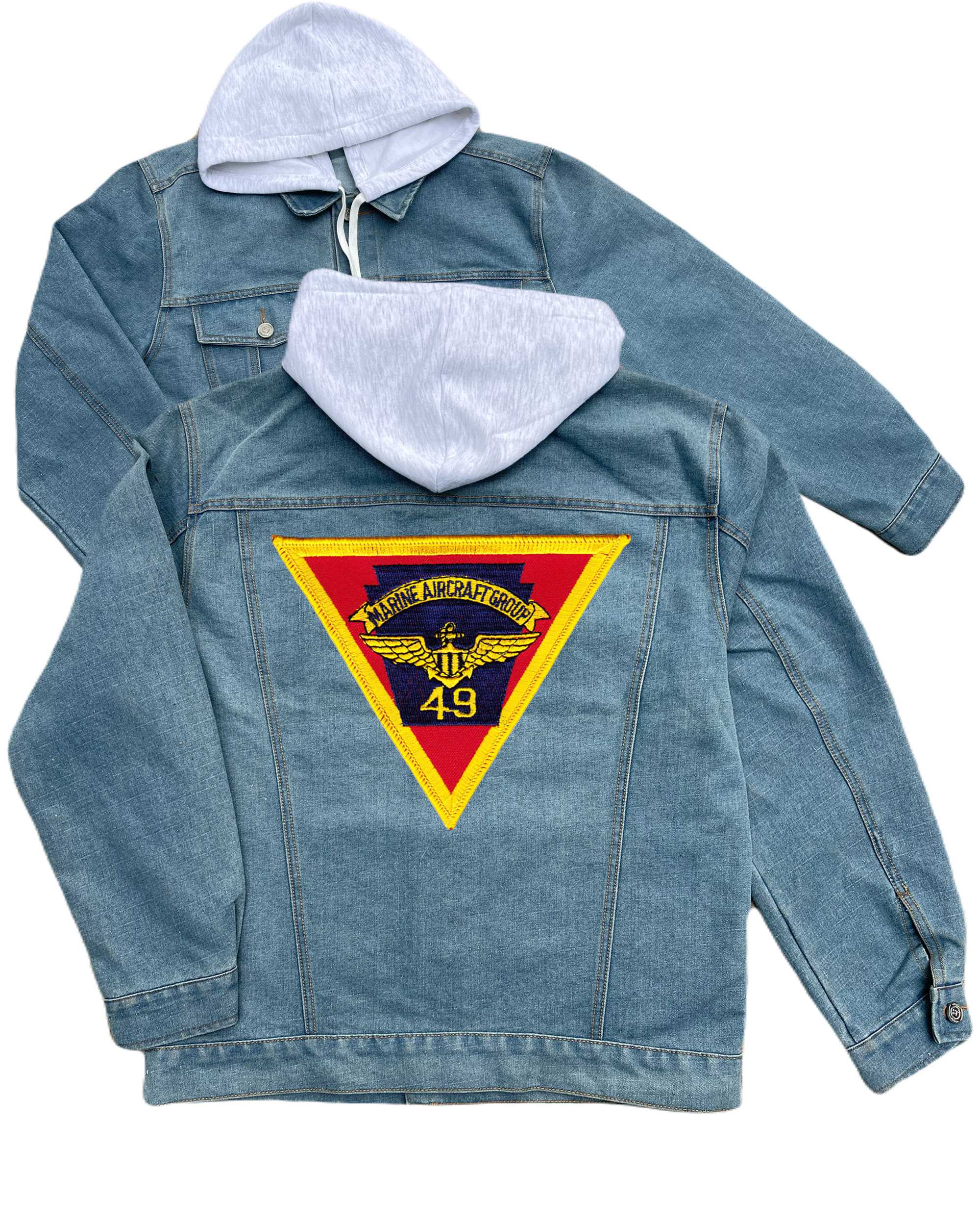Mag 49 Marine Air Group Embroidered Hood Jean Jacket