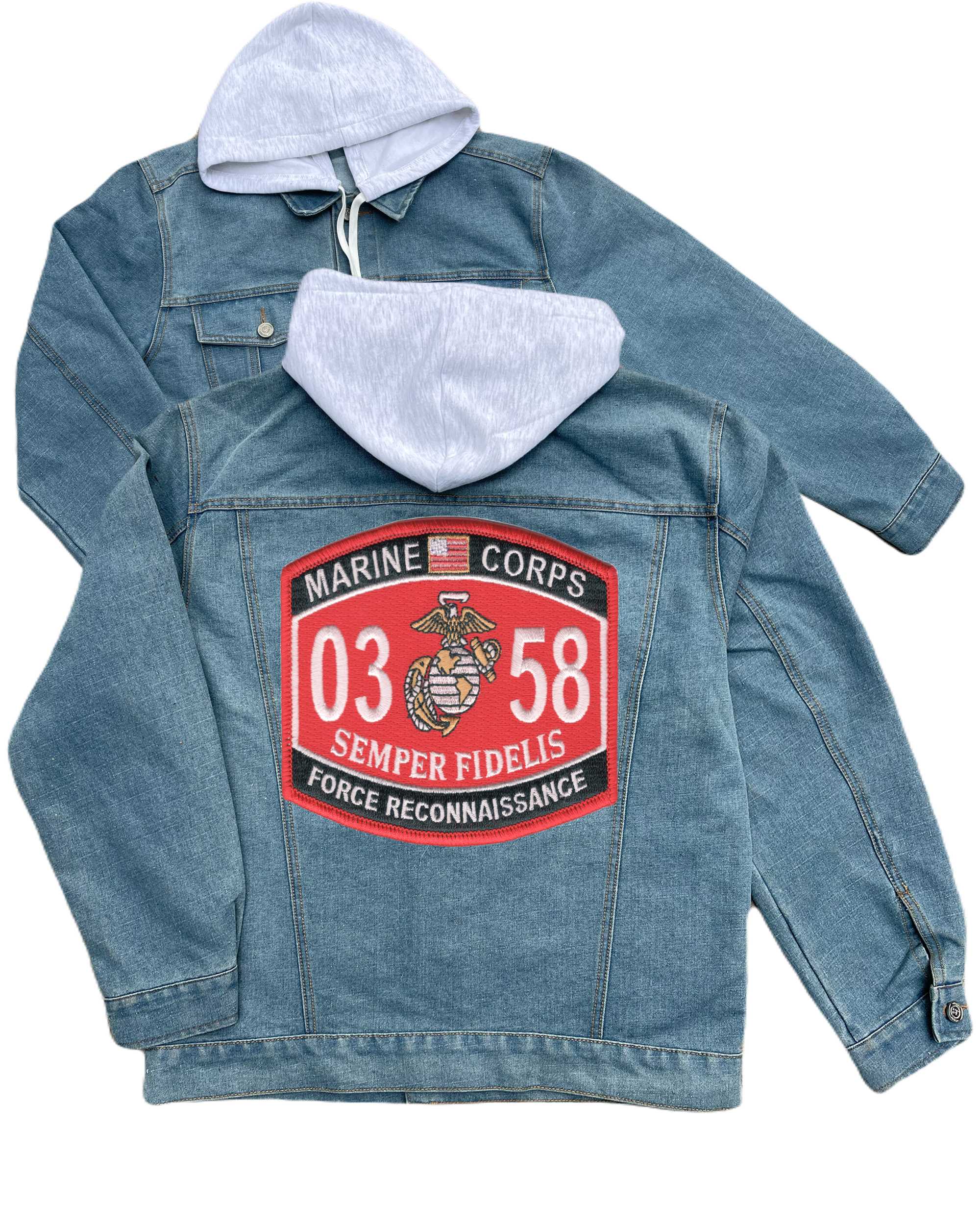 Marine Corps Force Reconnaissance 0358 Embroidered Hood Jean Jacket