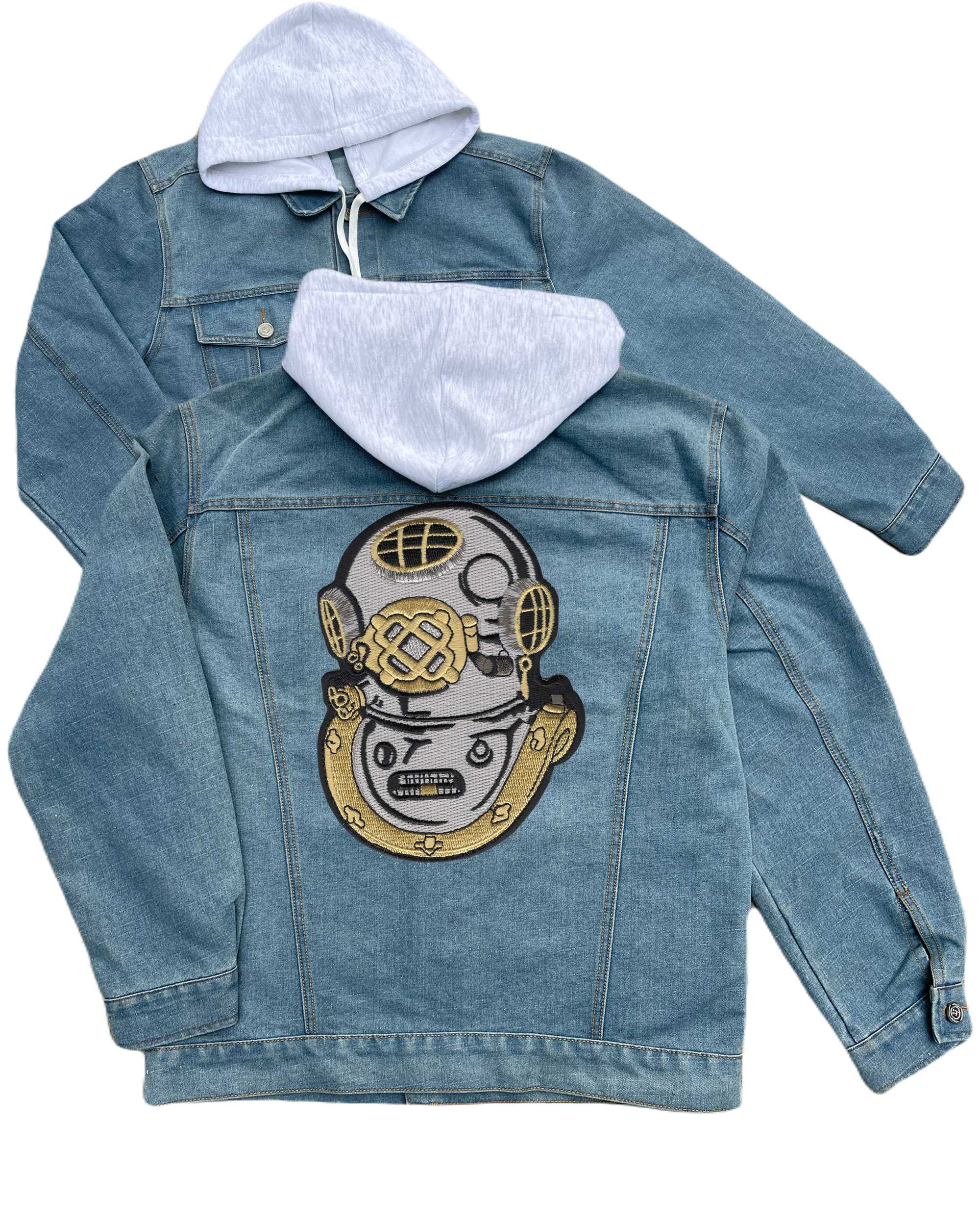 Mark V 1 Alpha Diving Helmet Embroidered Hood Jean Jacket Present Day