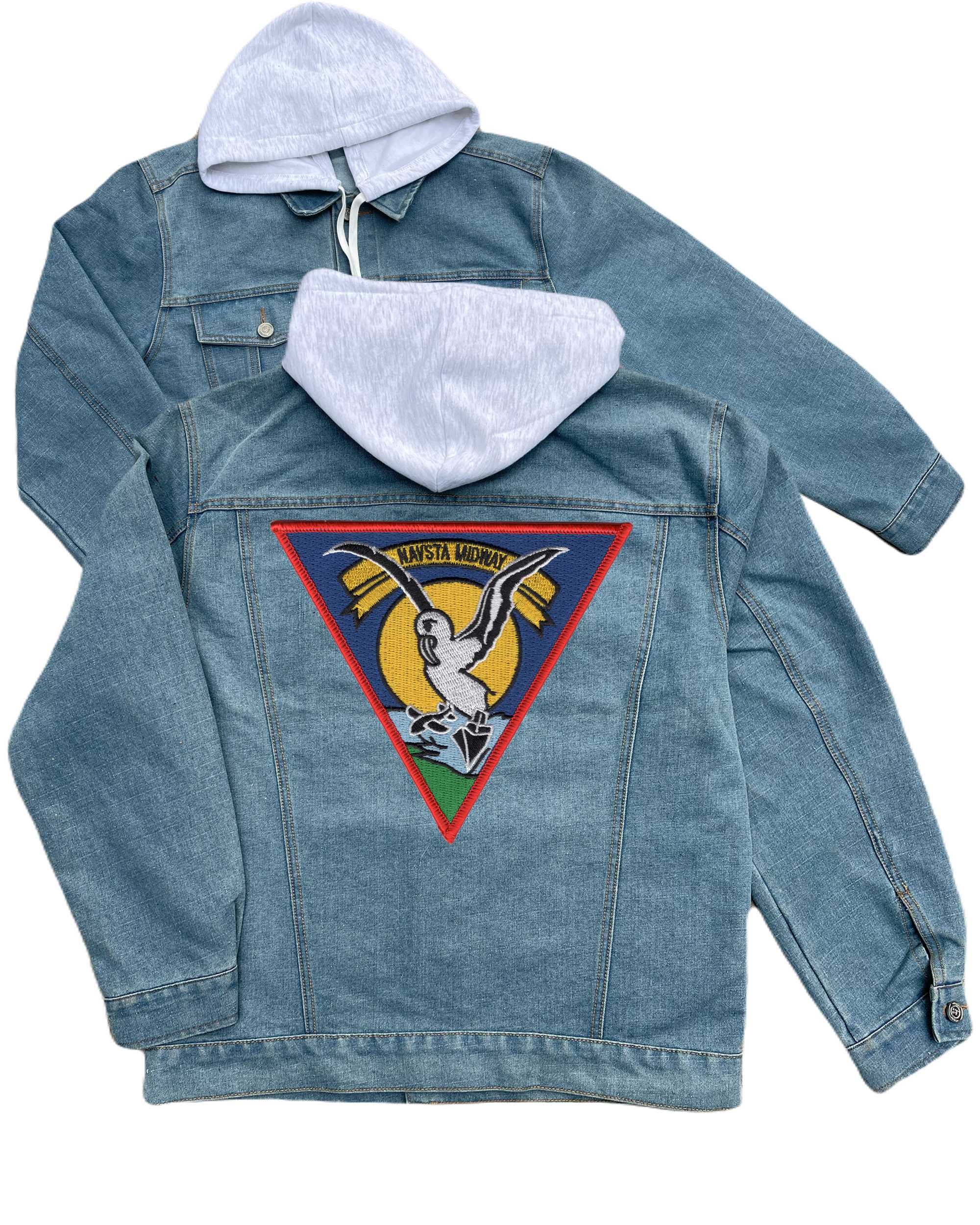 Military Intelligence Aviation Airborne Recon Low M Embroidered Hood Jean Jacket Od