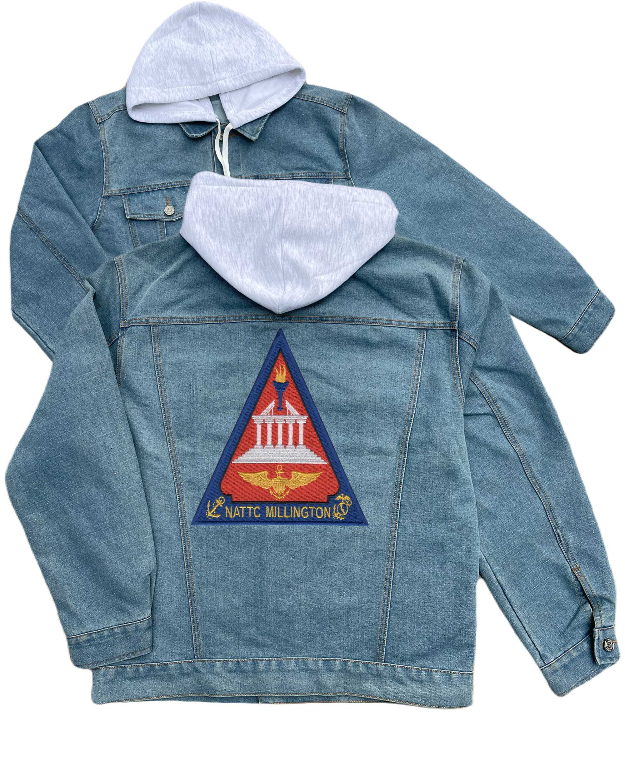 Millington Tennessee Naval Air Technical Training Center Embroidered Hood Jean Jacket