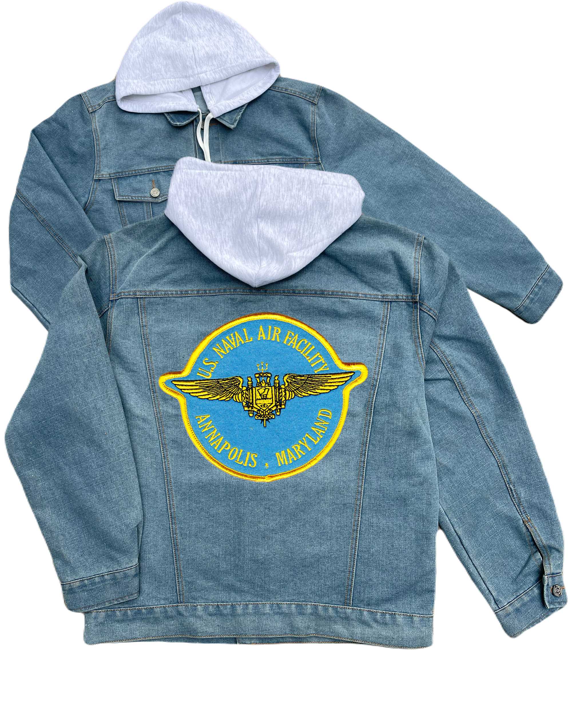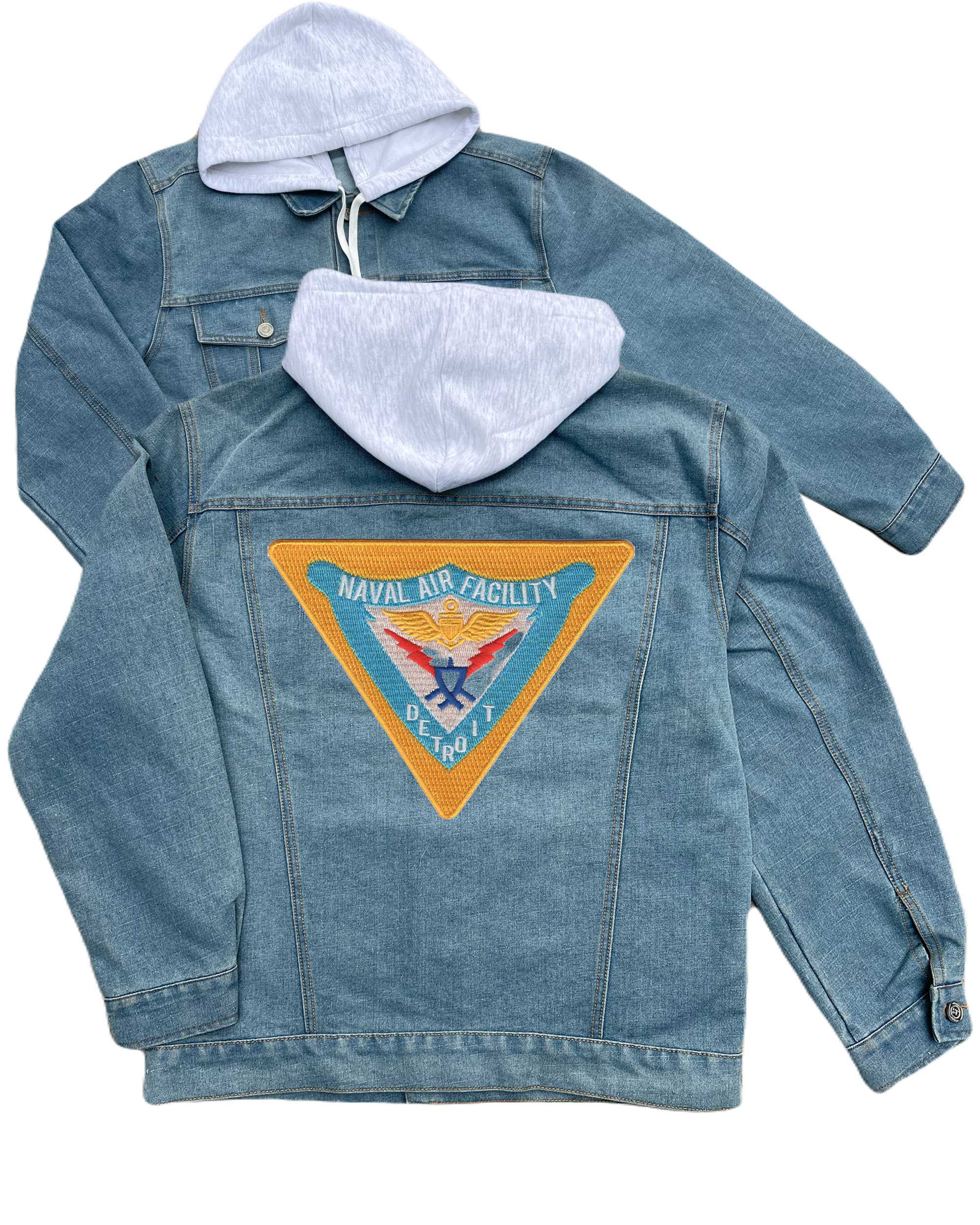 Naval Air Facility Detroit Michigan Embroidered Hood Jean Jacket