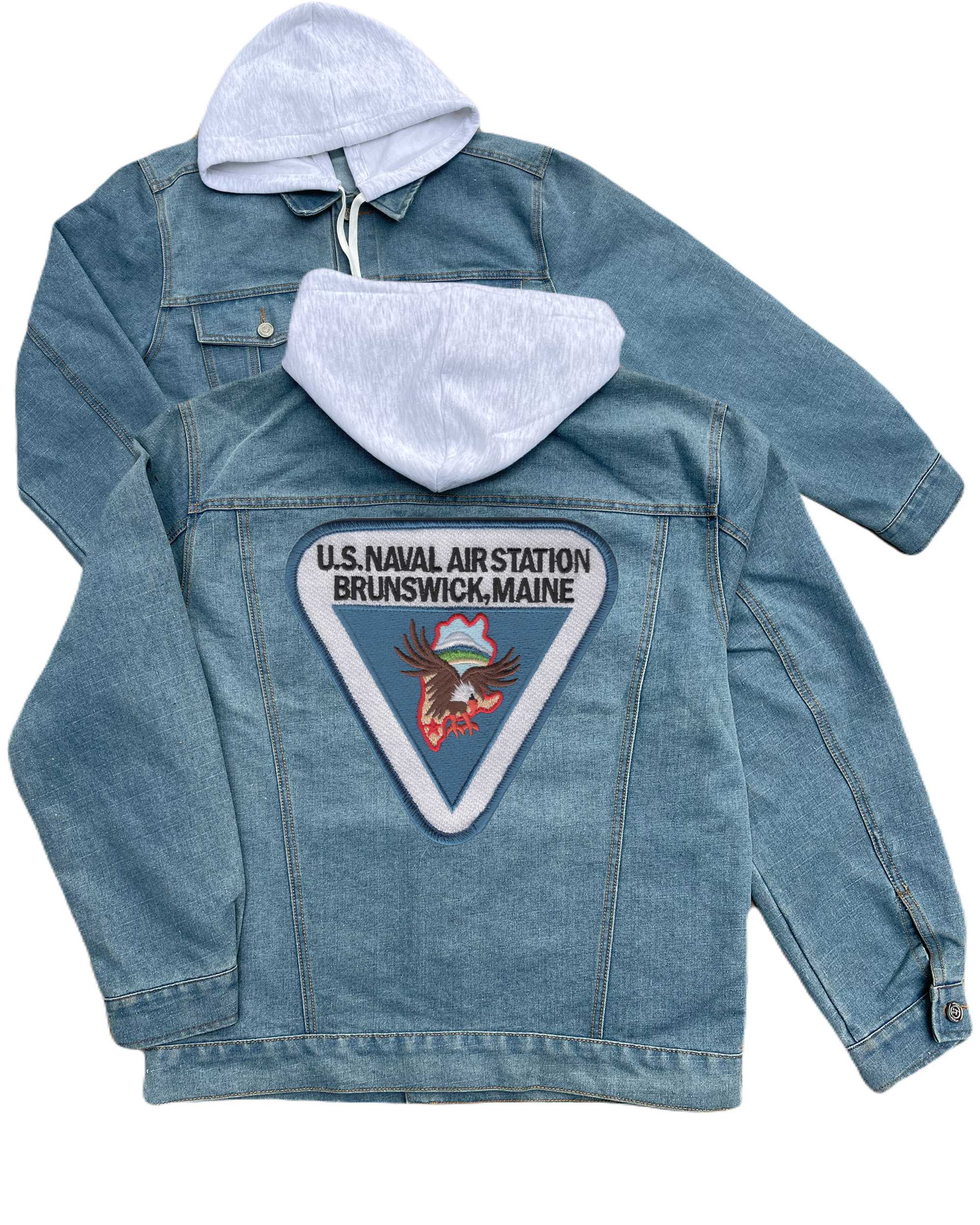 Naval Air Station Brunswick Maine Embroidered Hood Jean Jacket