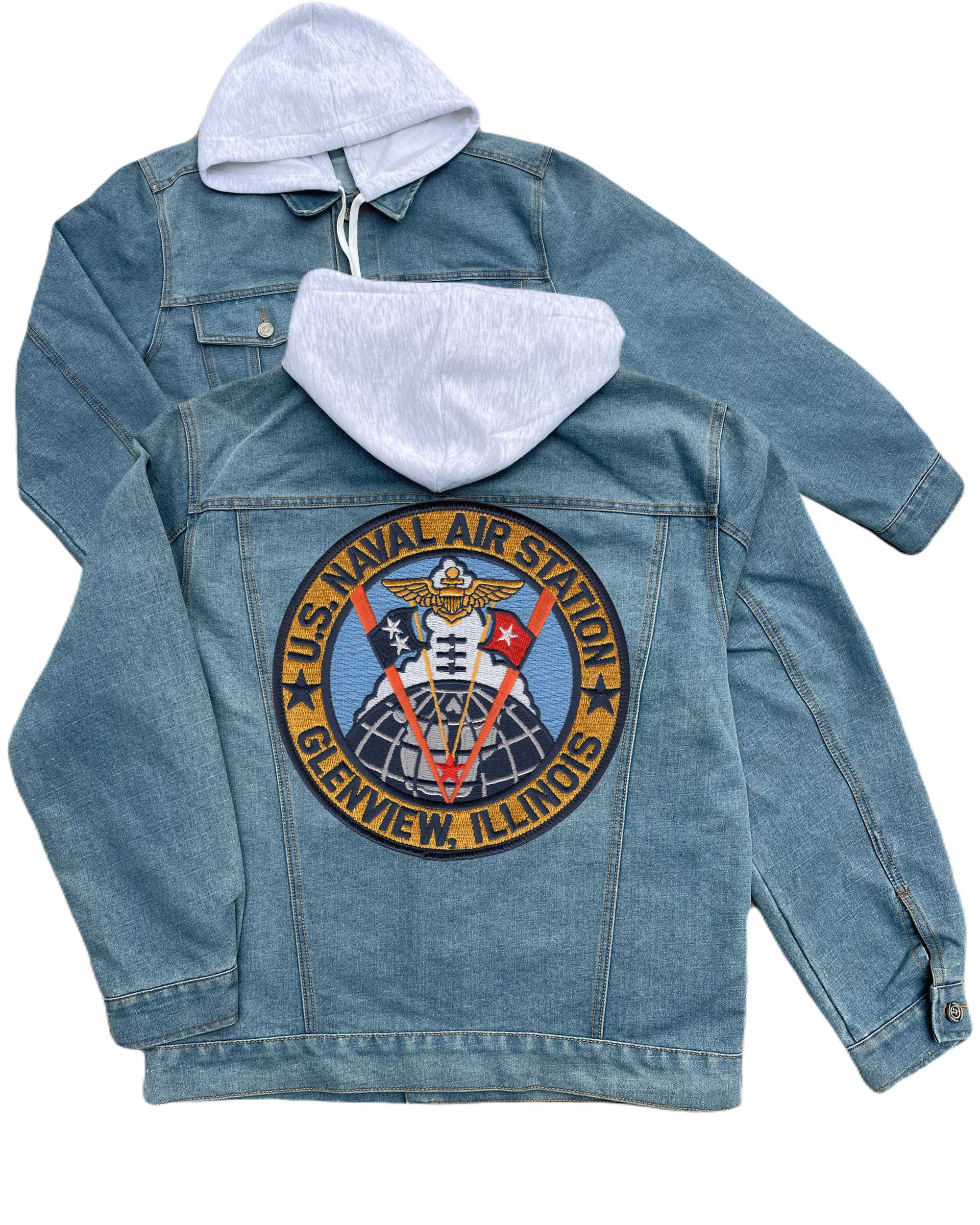Naval Air Station Glenview Illinios Embroidered Hood Jean Jacket