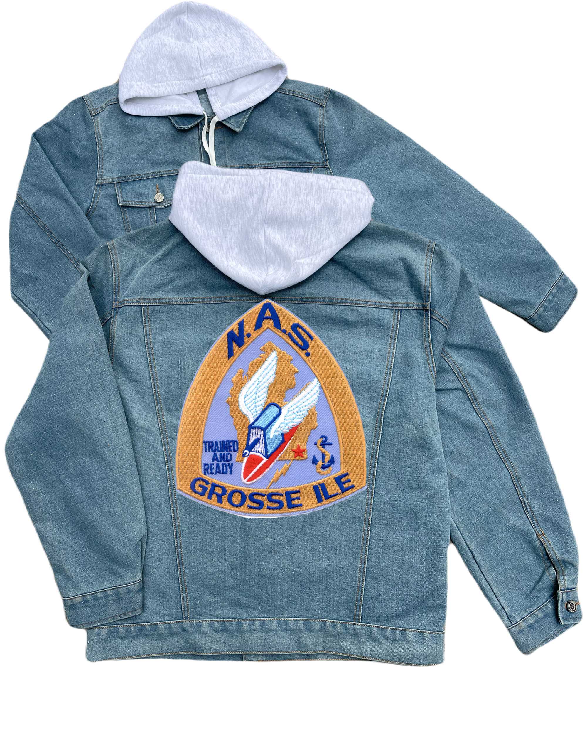 Naval Air Station Grosse Ile Michigan Embroidered Hood Jean Jacket