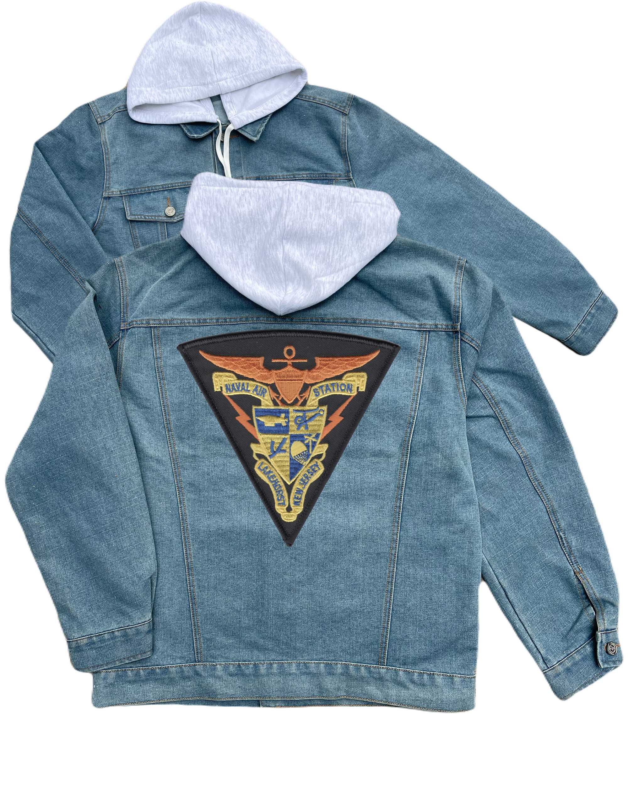 Naval Air Station Lakehurst New Jersey Embroidered Hood Jean Jacket