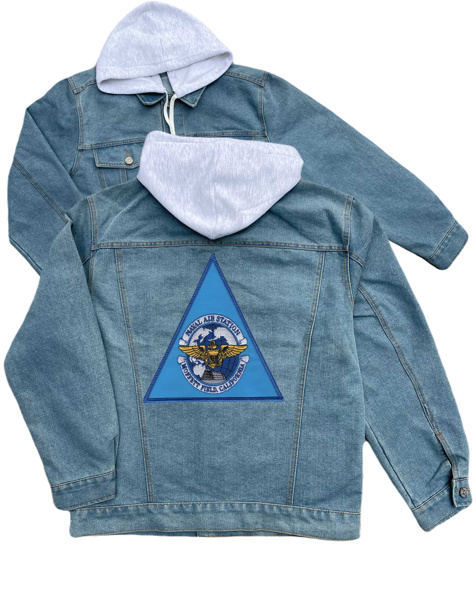 Naval Air Station Lincoln Nebraska Embroidered Hood Jean Jacket