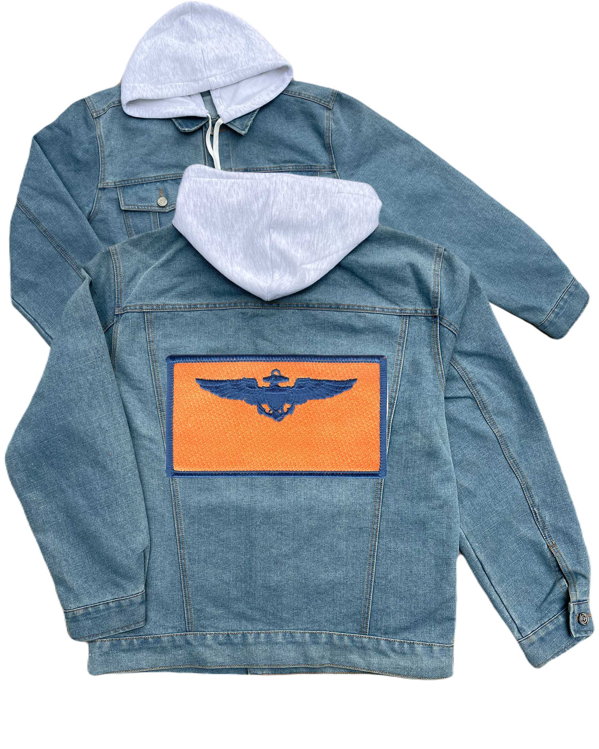 Naval Auxiliary Air Station Crows Landing California Embroidered Hood Jean Jacket