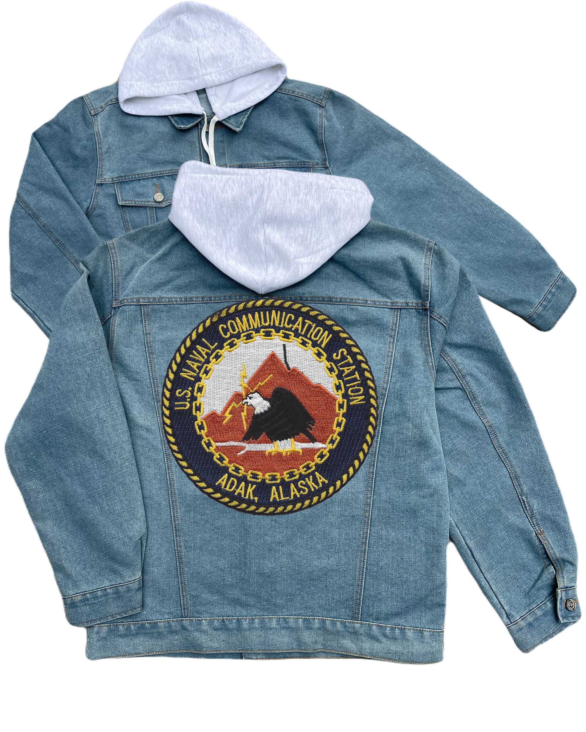Naval Communication Station Adak Alaska Embroidered Hood Jean Jacket
