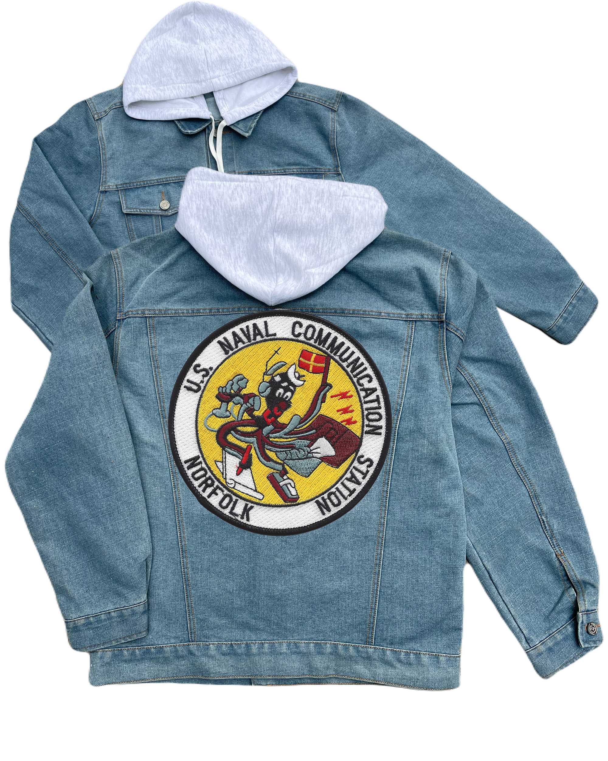 Naval Communication Station Norfolk Va Embroidered Hood Jean Jacket
