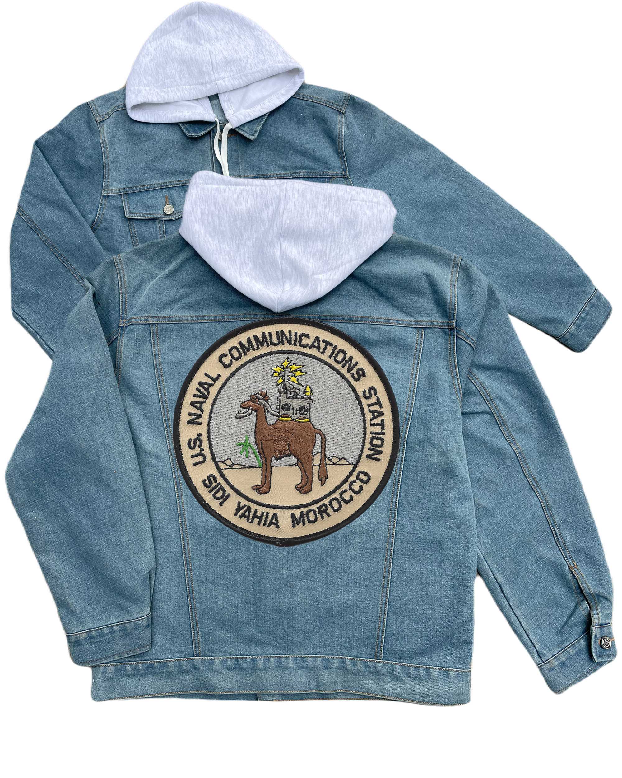 Naval Communications Station Sidi Yahia Morocco Embroidered Hood Jean Jacket