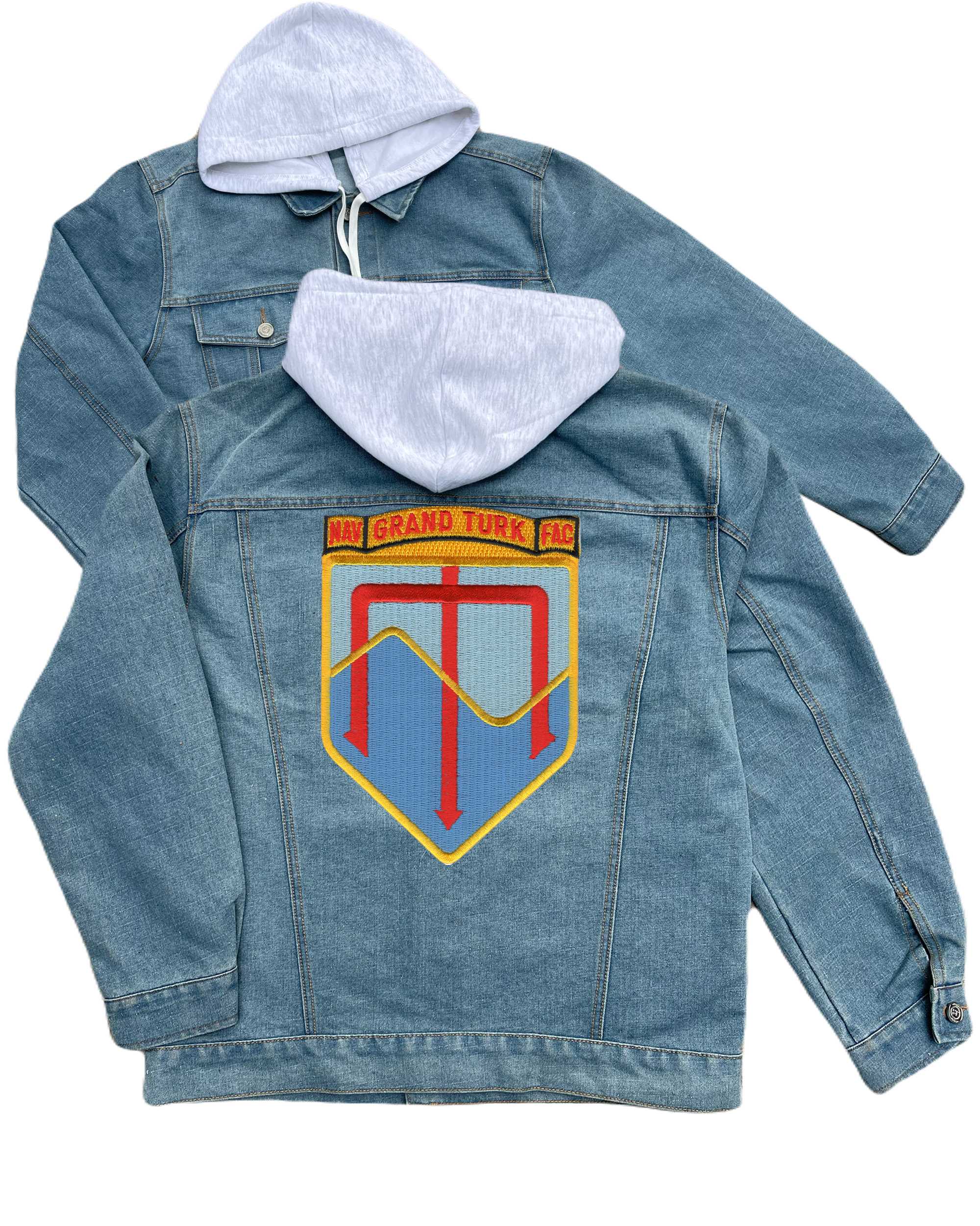 Naval Facility Okinawa Japan Camp Shields Seabee Embroidered Hood Jean Jacket