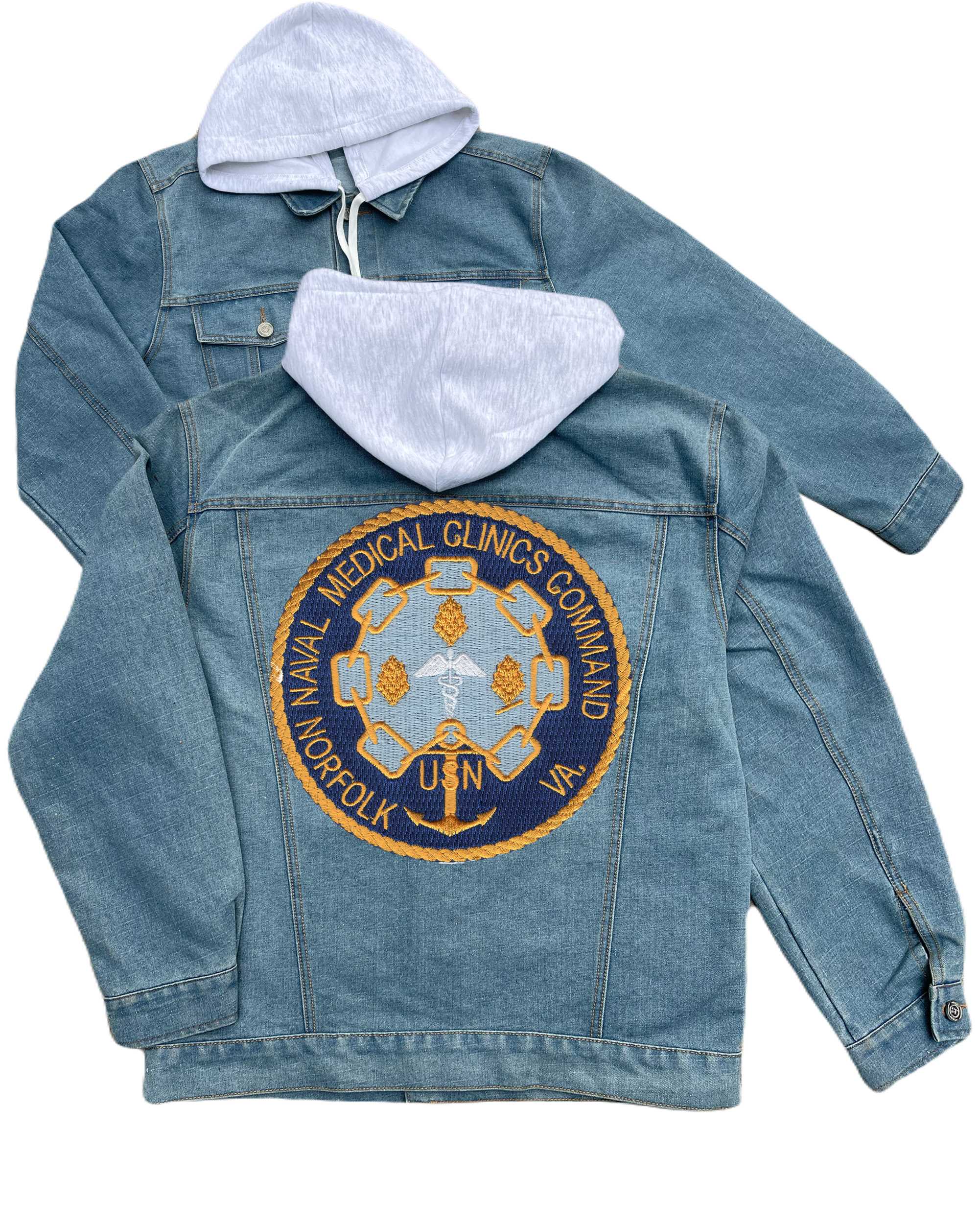 Naval Medical Clinics Command Norfolk Va Embroidered Hood Jean Jacket