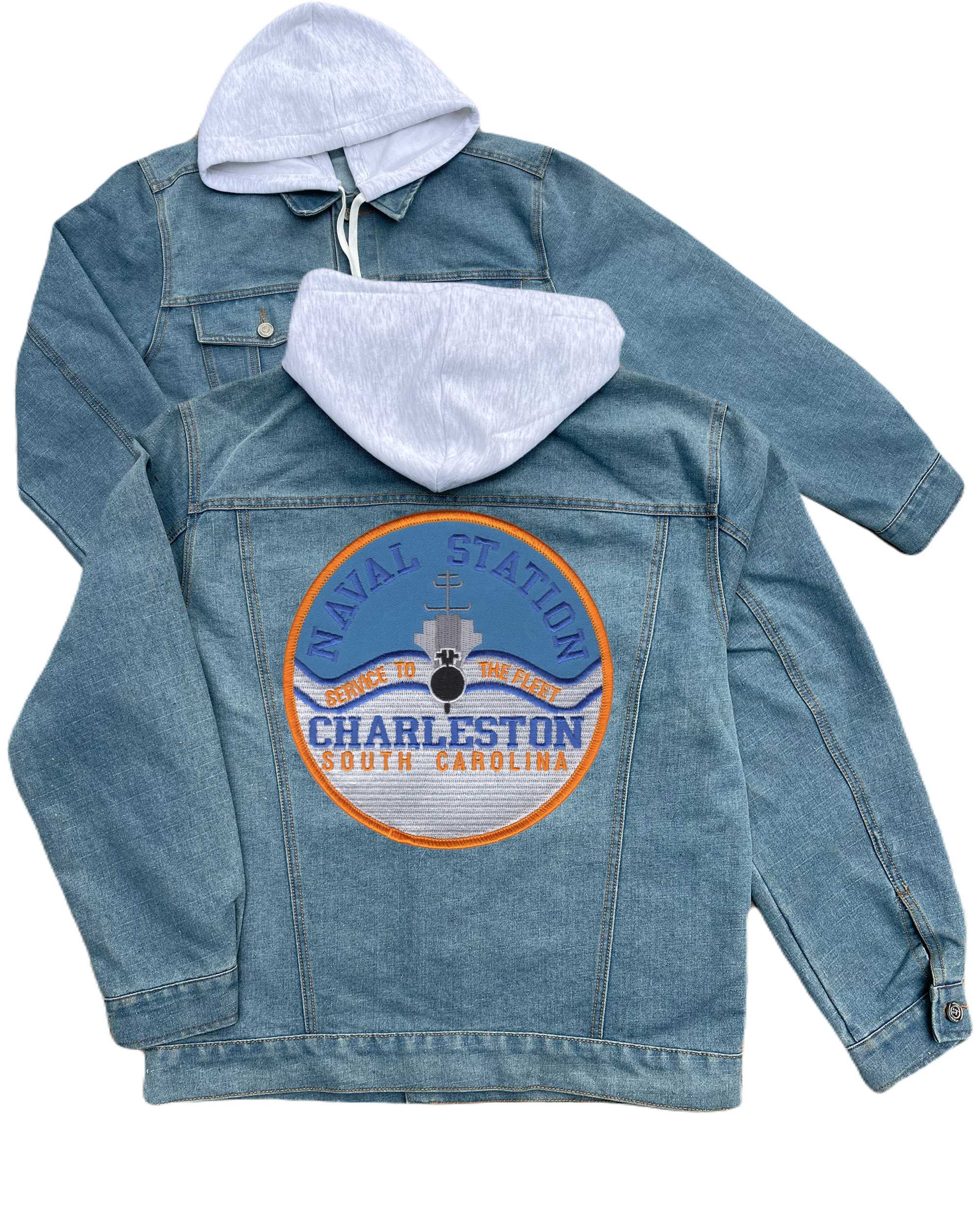 Naval Station Charleston South Carolina Embroidered Hood Jean Jacket