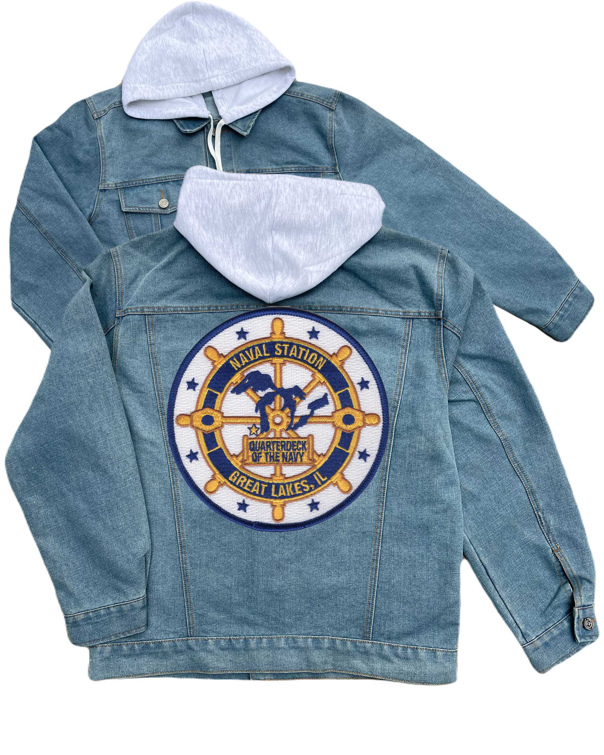 Naval Station Great Lakes Illinois Embroidered Hood Jean Jacket