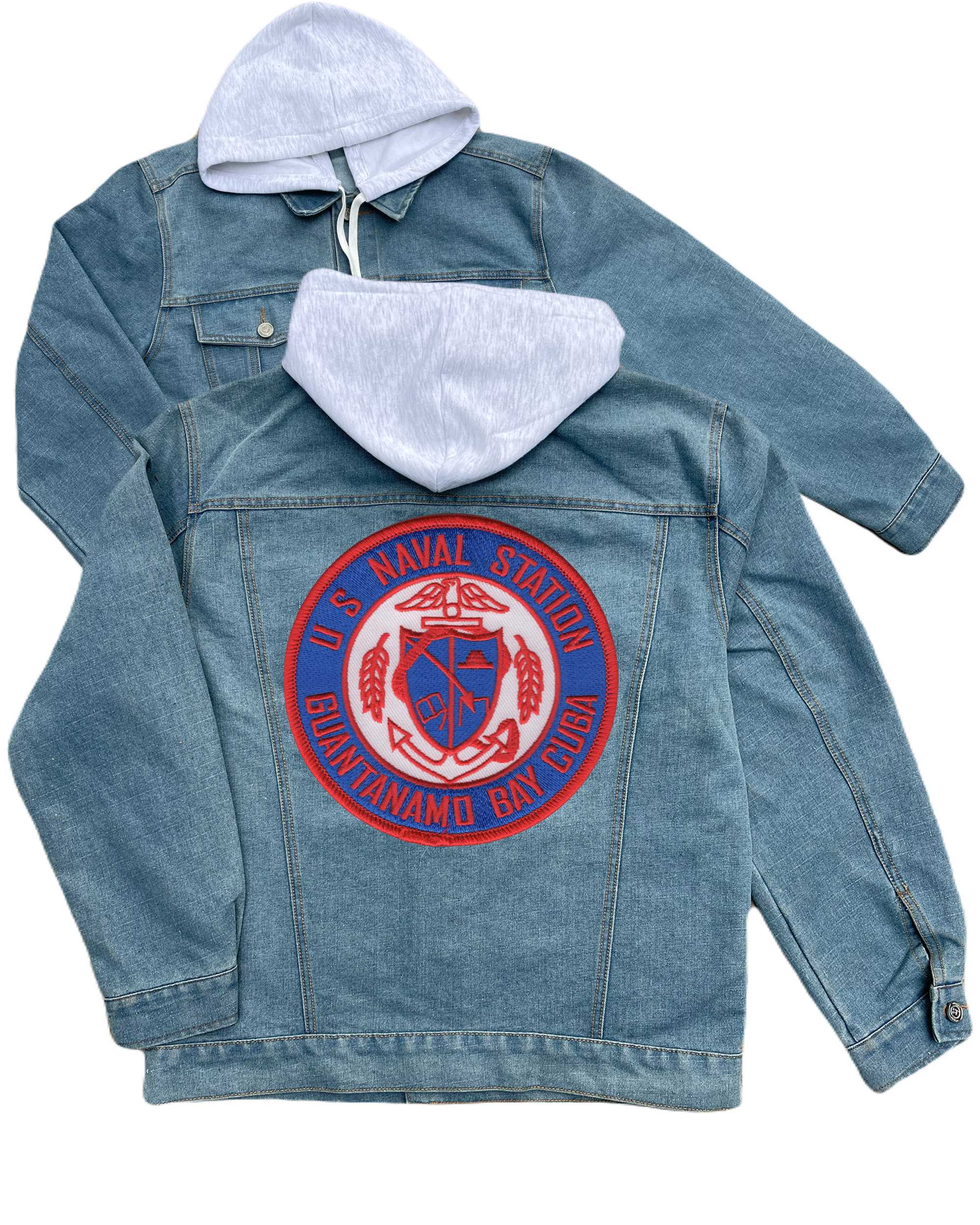 Naval Station Ingleside Texas Embroidered Hood Jean Jacket