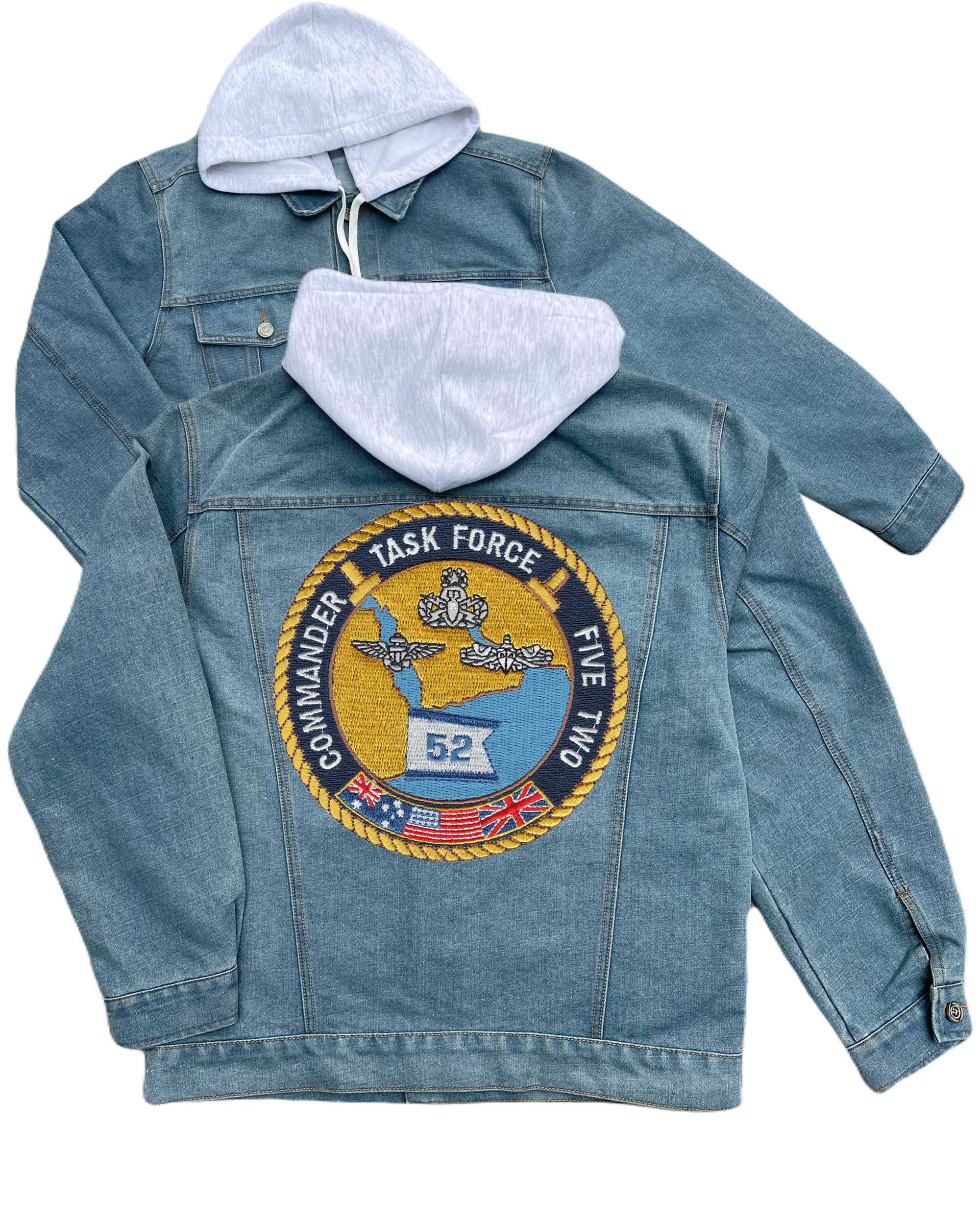 Navy Commander Task Force Five Two Embroidered Hood Jean Jacket