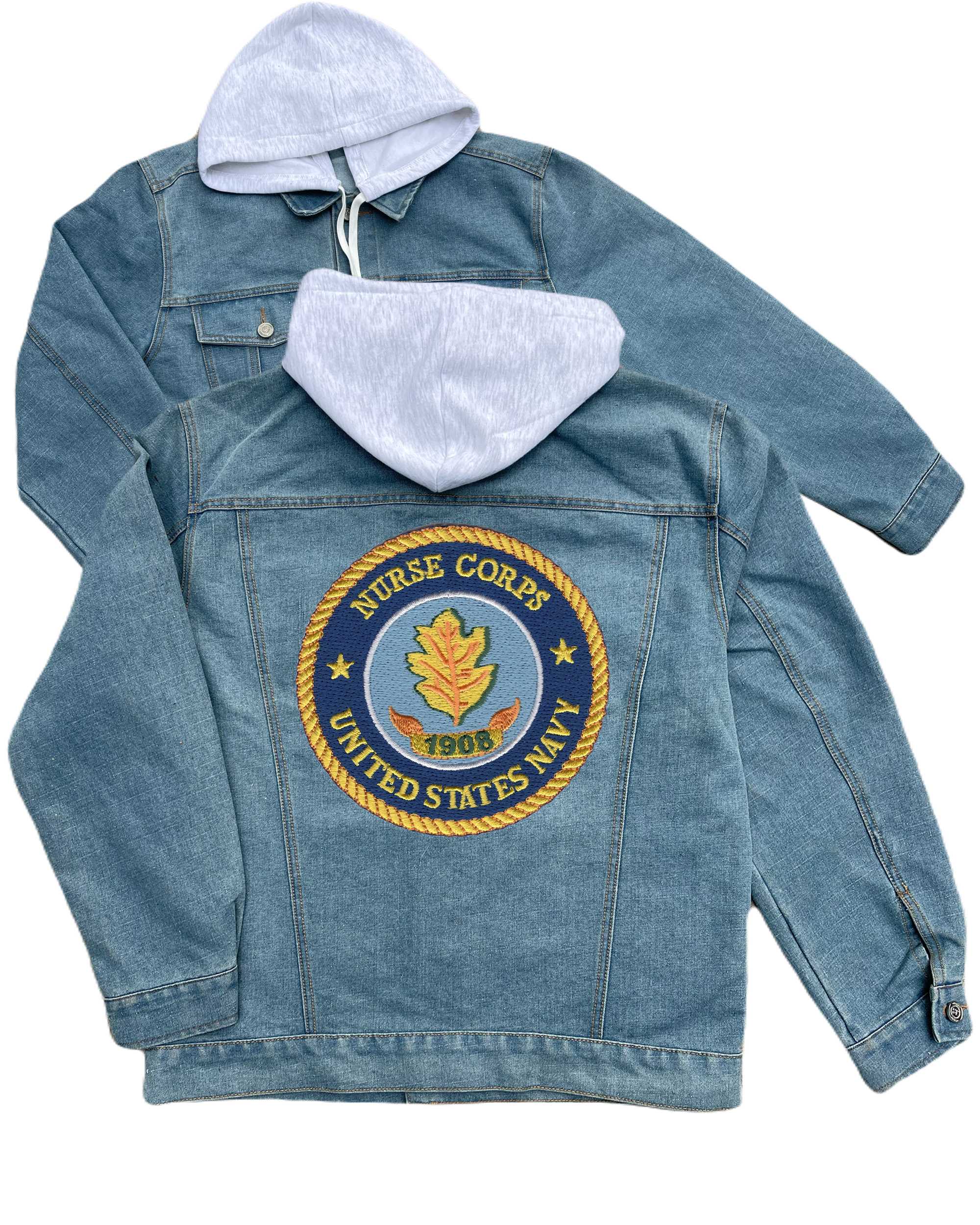 Navy Patrol Squadron 10 Red Lancer Vp 10 Embroidered Hood Jean Jacket