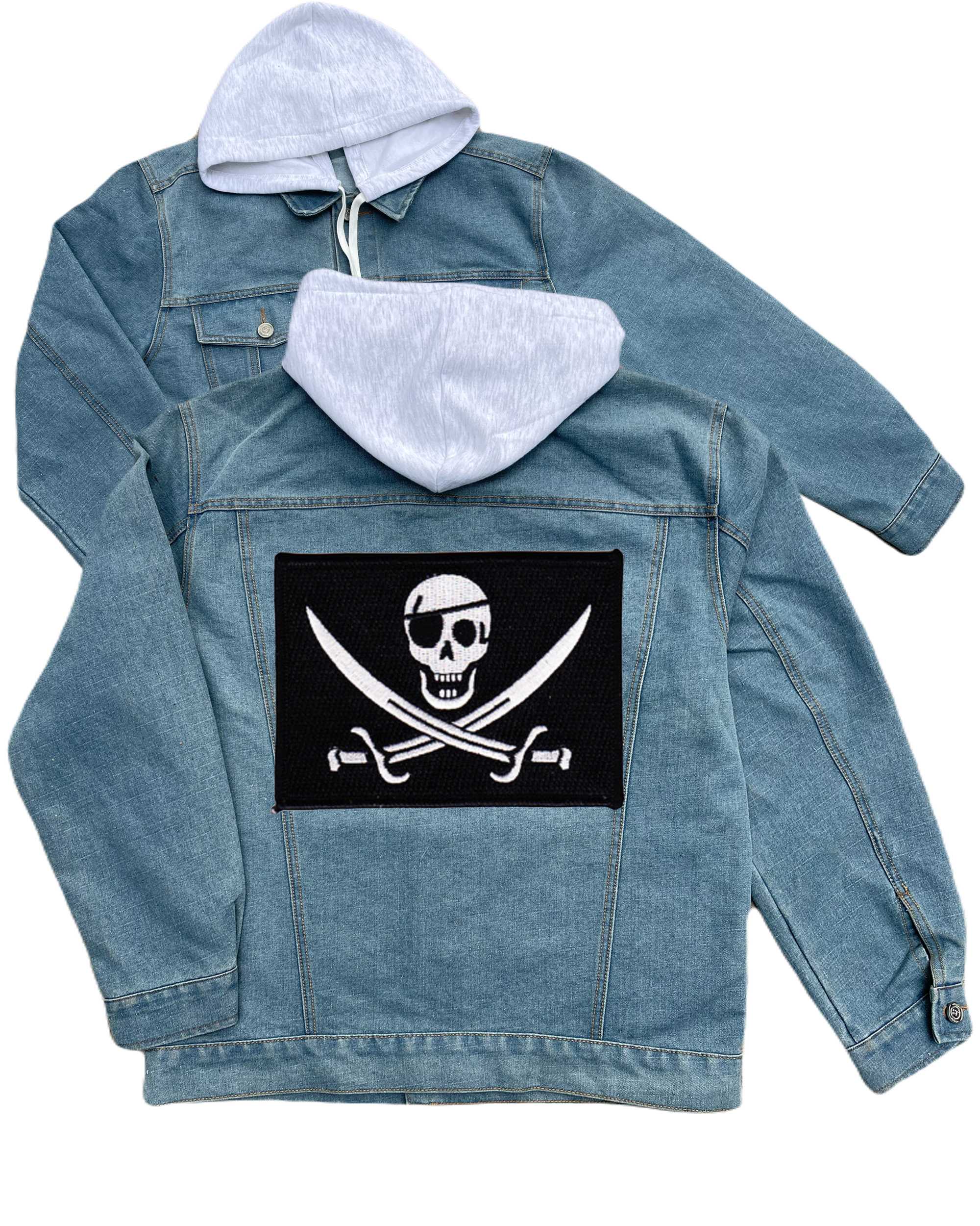 Navy Seal 1 Eye Calico Jack Pirate Acu Embroidered Hood Jean Jacket